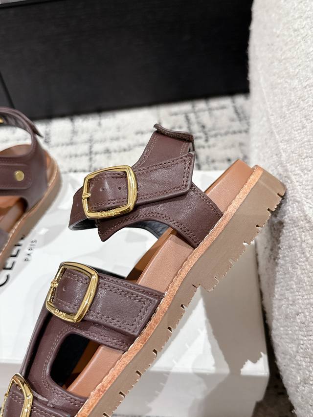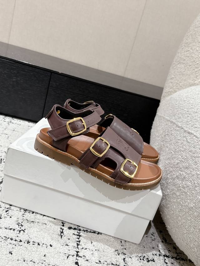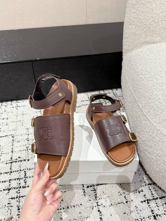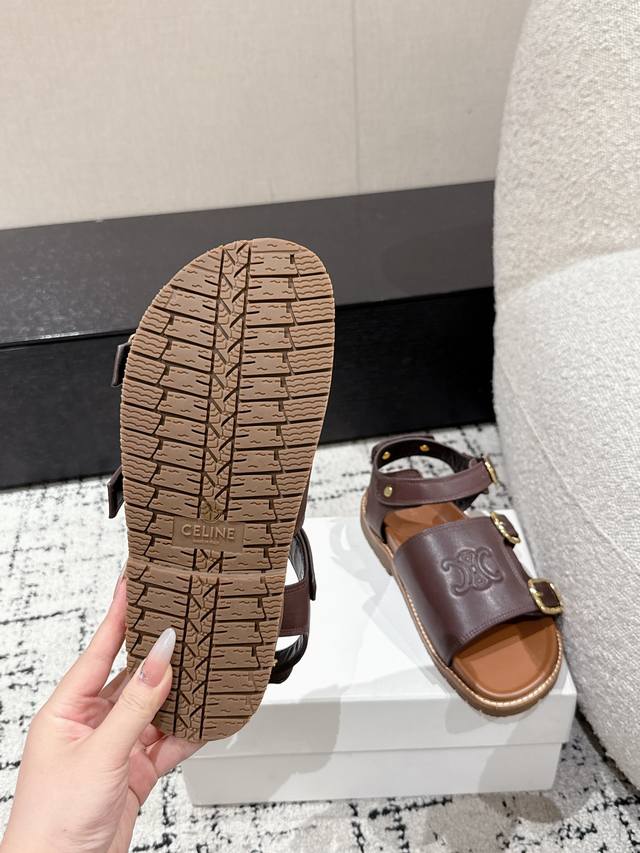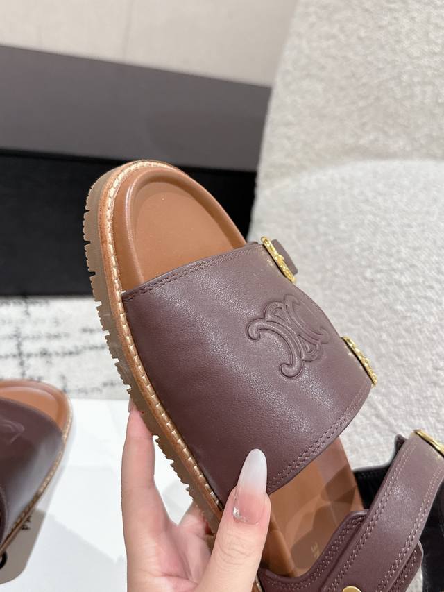 celine塞琳 25/ 春夏最新 厚底 凯旋门英伦风平底微标凉鞋 拖鞋