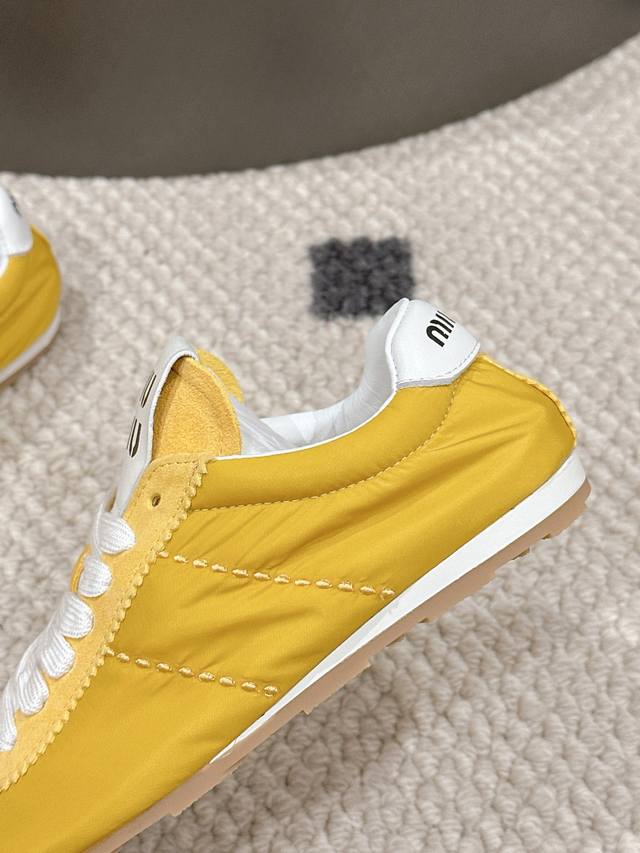 Miumiu2025 早春走秀新款阿甘德训鞋运动鞋, 巨巨巨好穿的德训鞋,缪缪这款 ,早春走秀款德训鞋,简单很随意不羁 复古颜值满分 又能体现单宁美感 整双鞋子设计简约时尚 上脚非常轻便而且百搭!