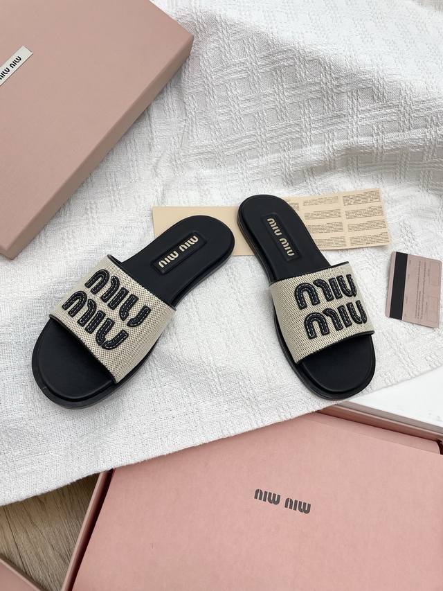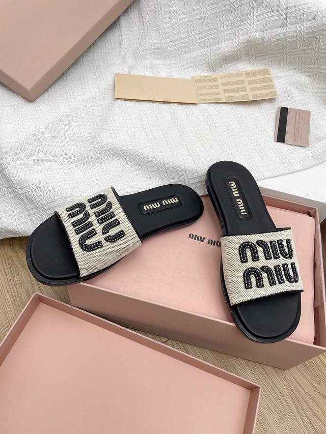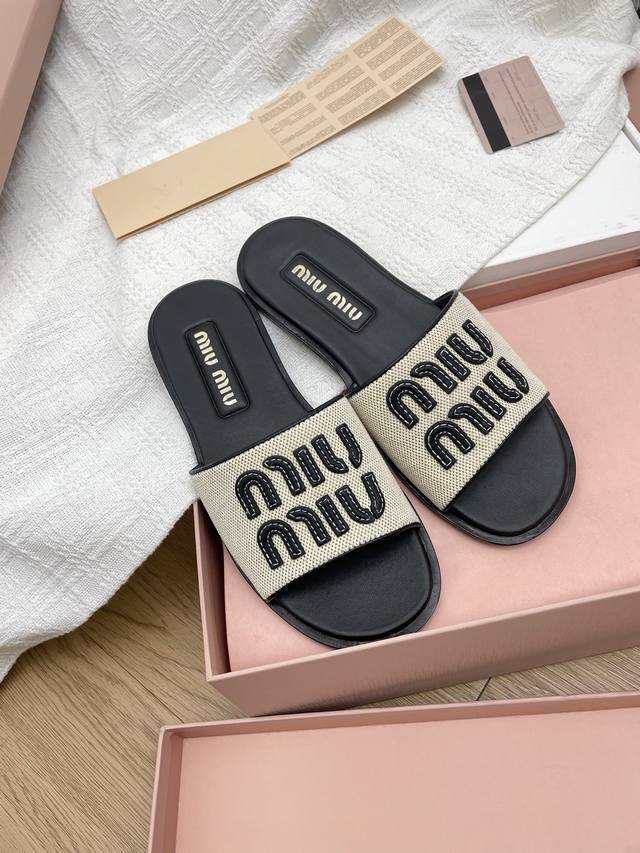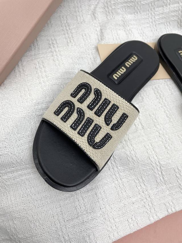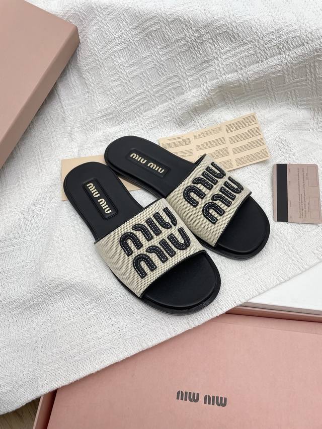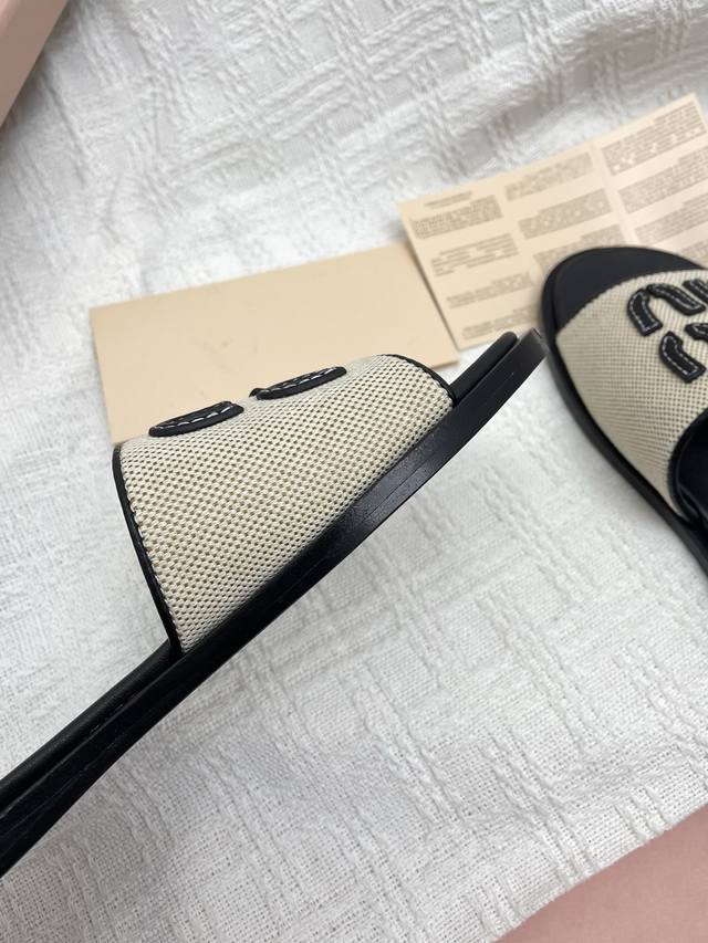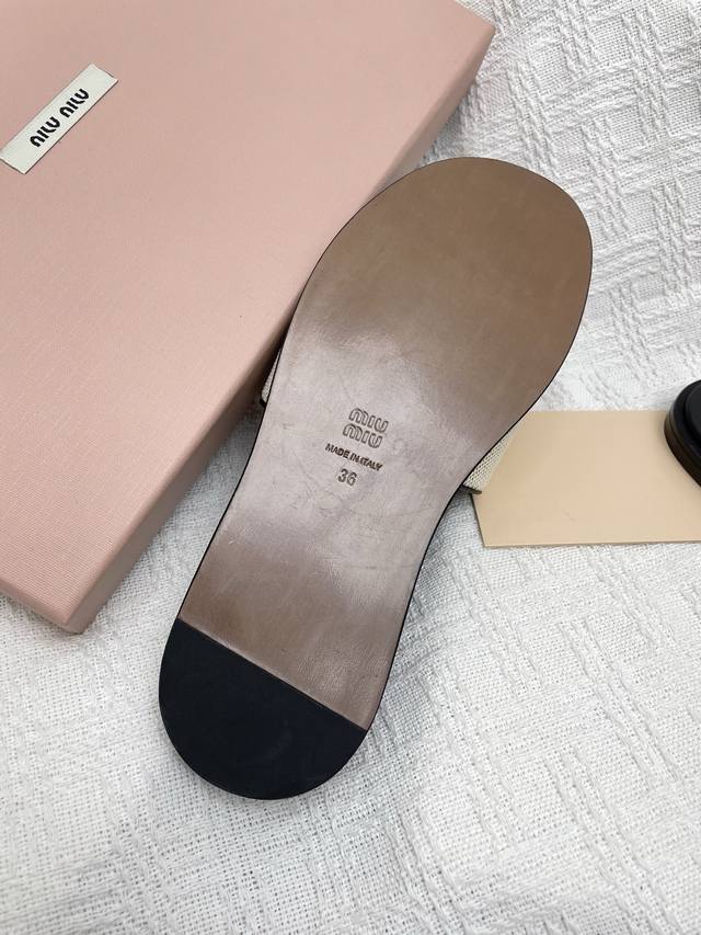 370代购级Miu Miu2025早春新款平底编织字母平底拖