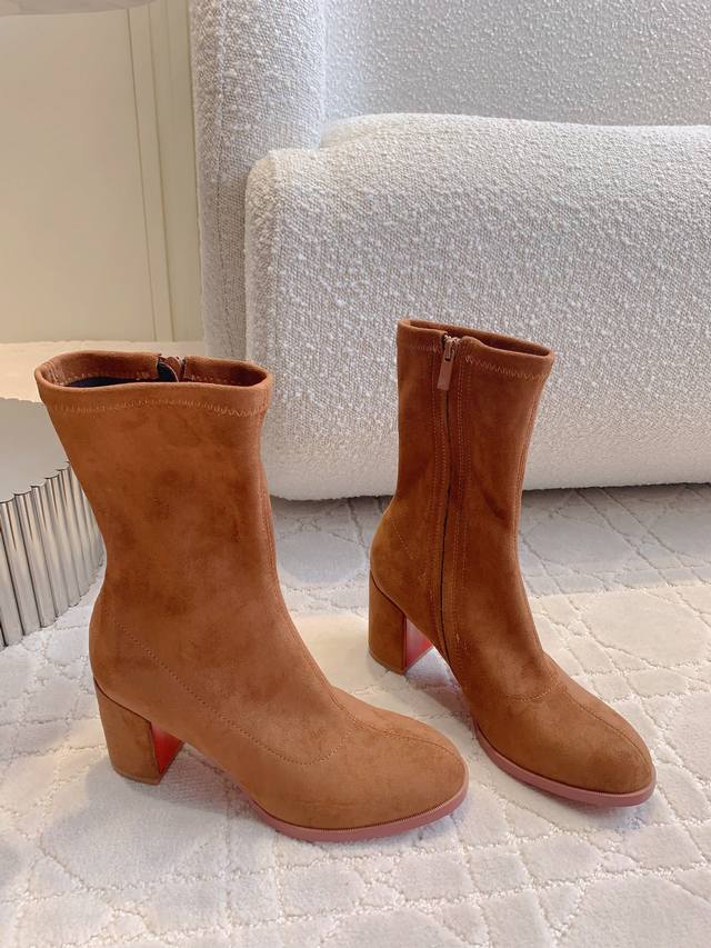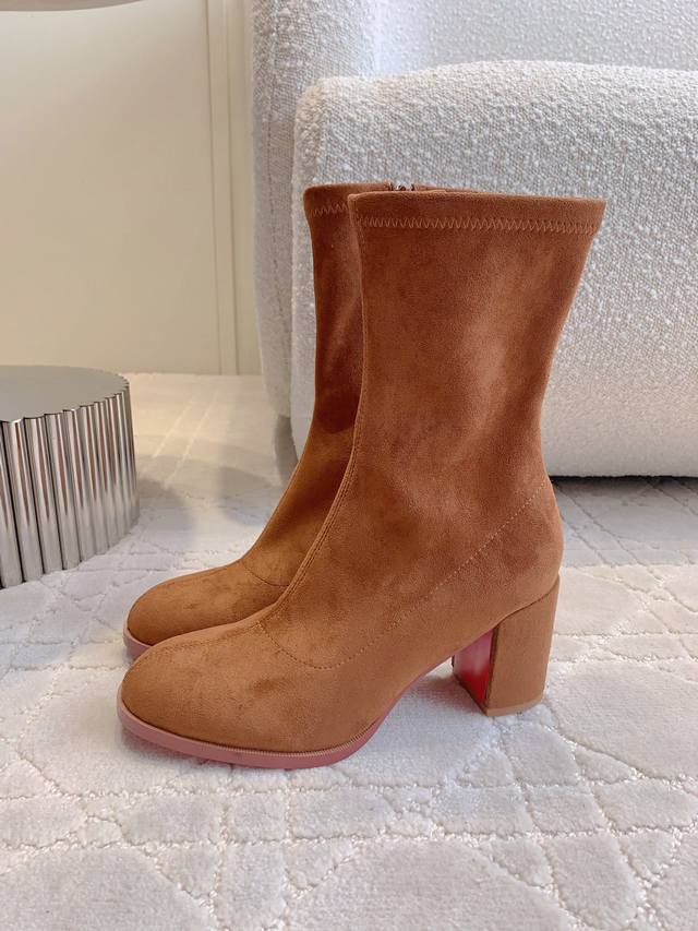 38寸 46寸340 52寸370 Christian Loubouti*新款高跟粗跟袜靴 上脚超级显瘦 秋冬百搭神器 好穿不累脚 鞋面羊皮 垫脚羊皮 意大利真