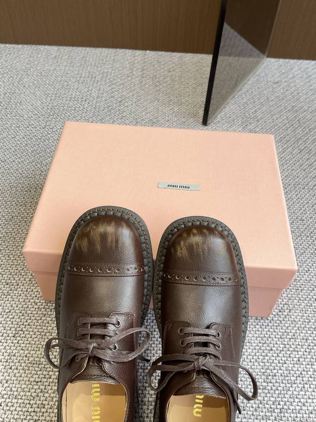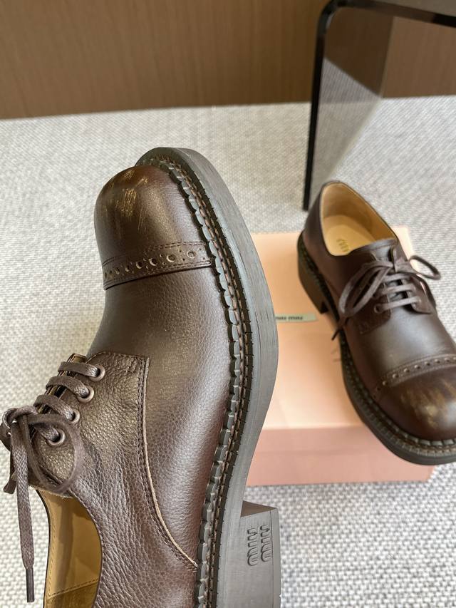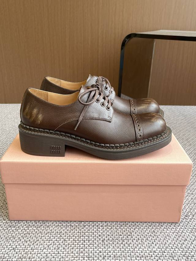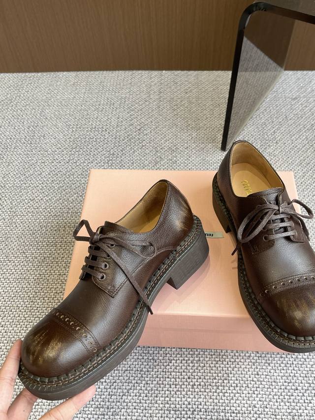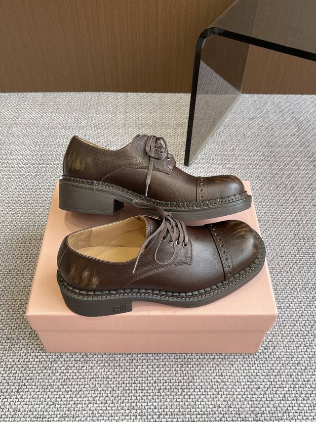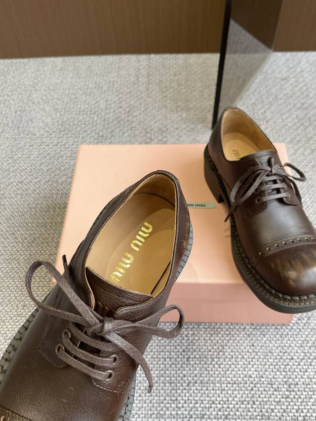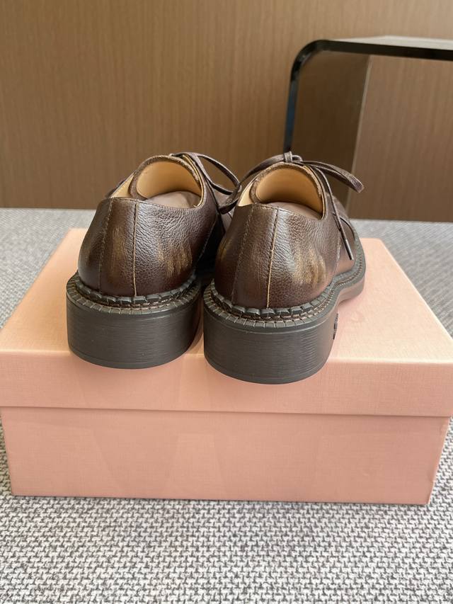 390Miu Miu缪缪 25Ss春夏走秀款 系带乐福鞋