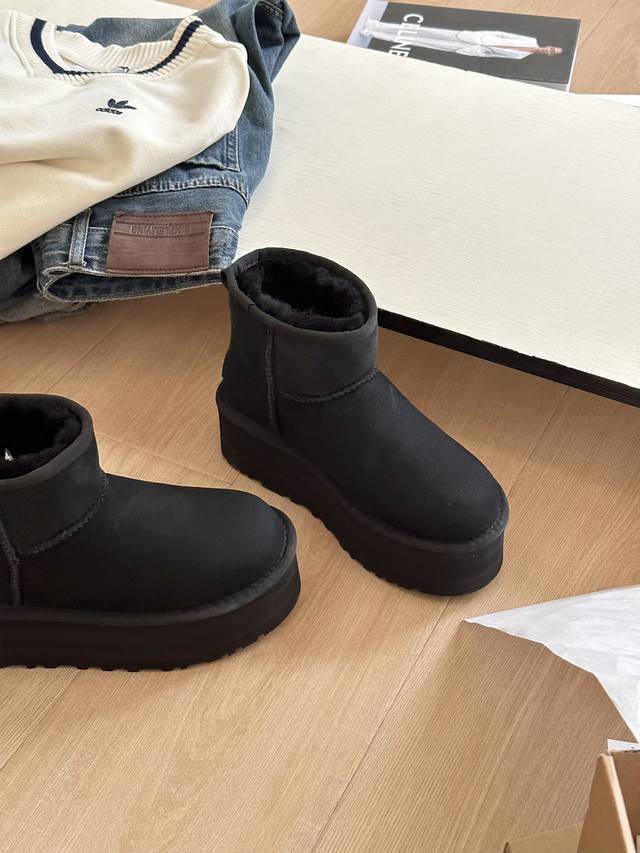 5Cm 低筒 黑色 +++Ugg.秋冬氛围感 5Cm厚底低筒 最流行的厚底元素 妥妥拉长腿型 隆丰a级皮毛一体 软糯有质感 超级喜欢 Size: 35-41