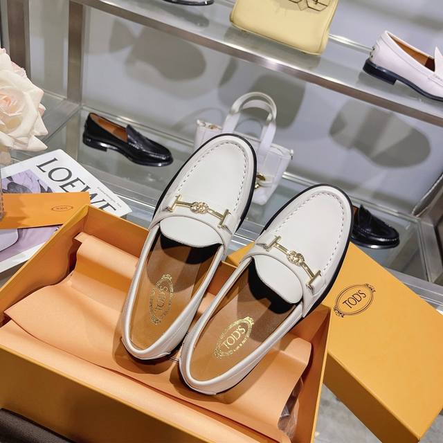 9527-3 女 白¥350(35-40)本款乐福鞋以半高光皮革制成,点缀精巧横条和T形圆圈饰扣。外露手工缝线尽显精湛工艺。外底设有凸起橡胶豆豆。简约百搭,是换季优选。