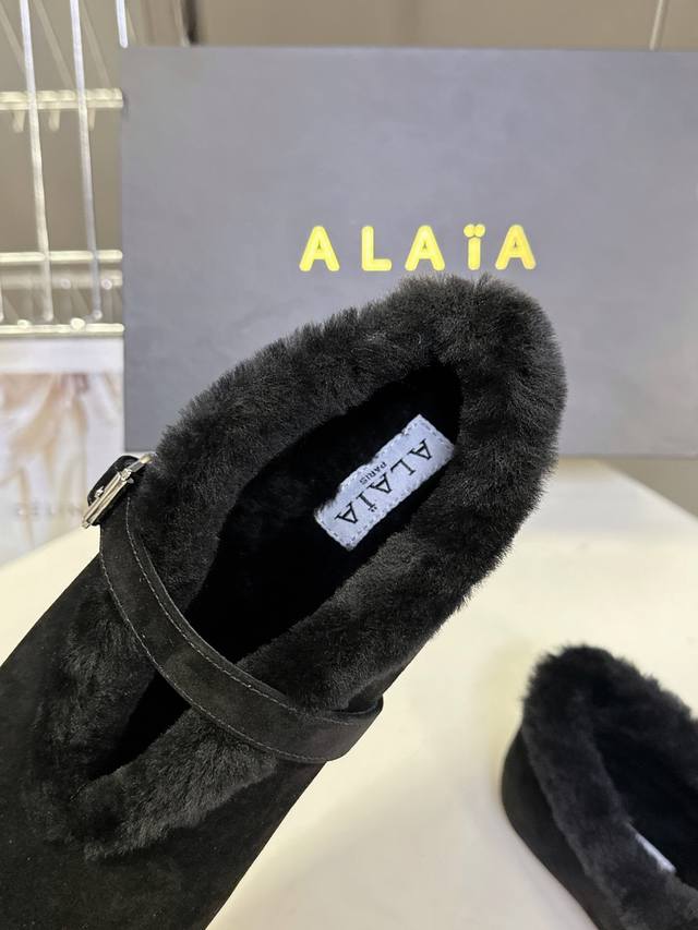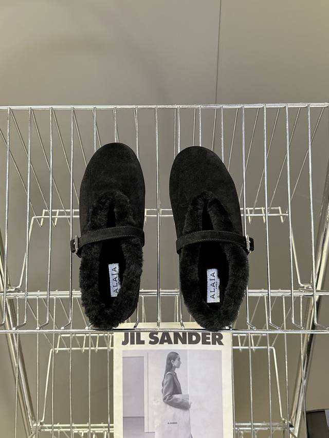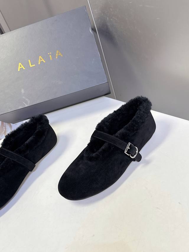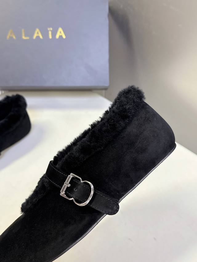 Alaia 阿莱亚秋冬走秀款平底玛丽珍毛毛鞋
