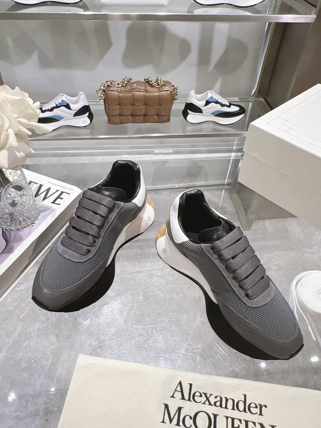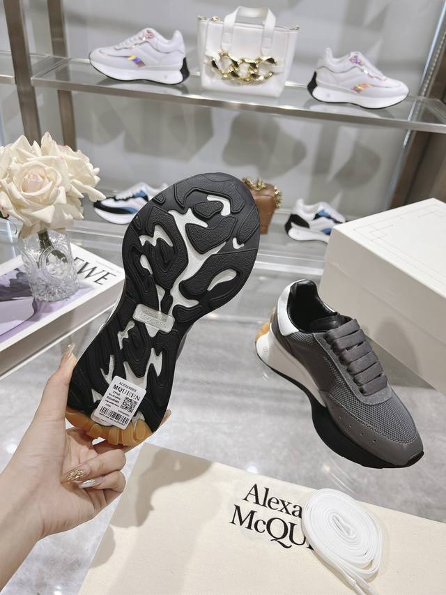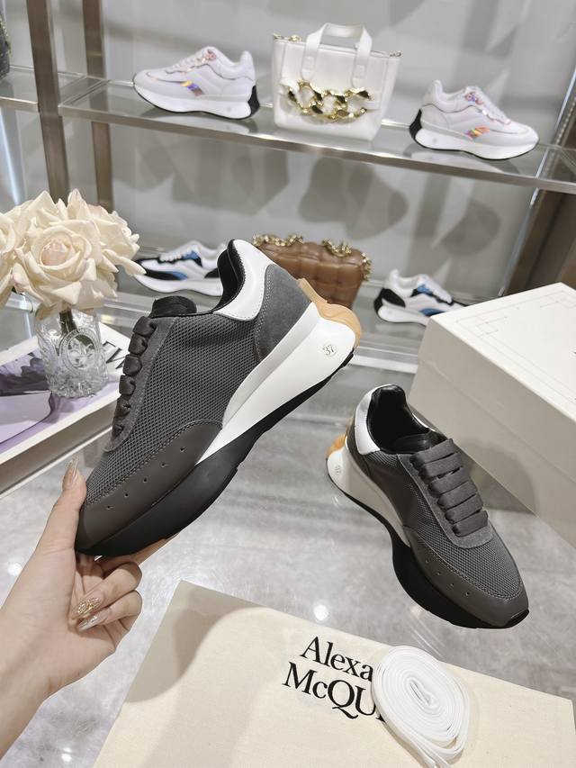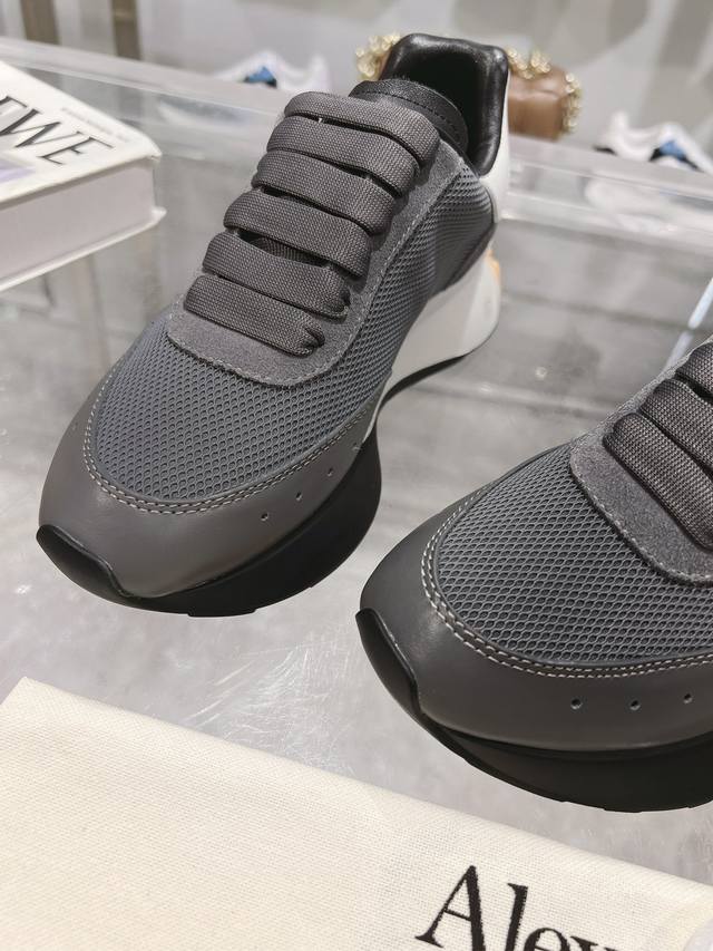 Alexander Mcqueen 亚历山大麦昆 春夏男Sprint运动情侣款 鞋侧面饰有时尚个性字母Seal Logo标志 全皮十网面工艺 内里羊皮 牛皮垫脚