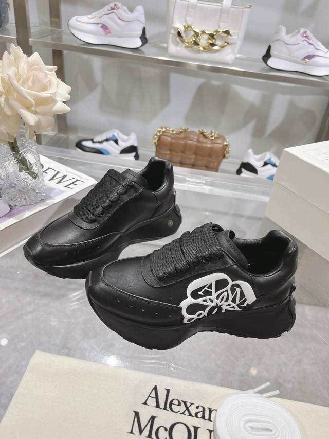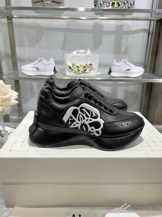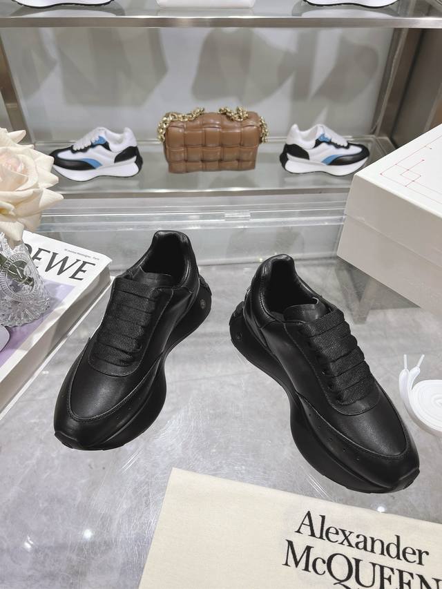 Alexander Mcqueen 亚历山大麦昆 春夏男Sprint运动情侣款 鞋侧面饰有时尚个性字母Seal Logo标志 全皮压花油边工艺 内里羊皮里 牛皮垫脚,不脱层不褪色,最新精美全套包装 另配有一幅鞋带 女35-40男39-45
