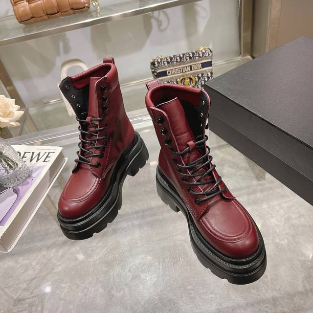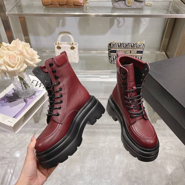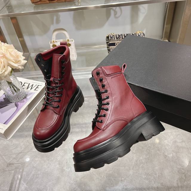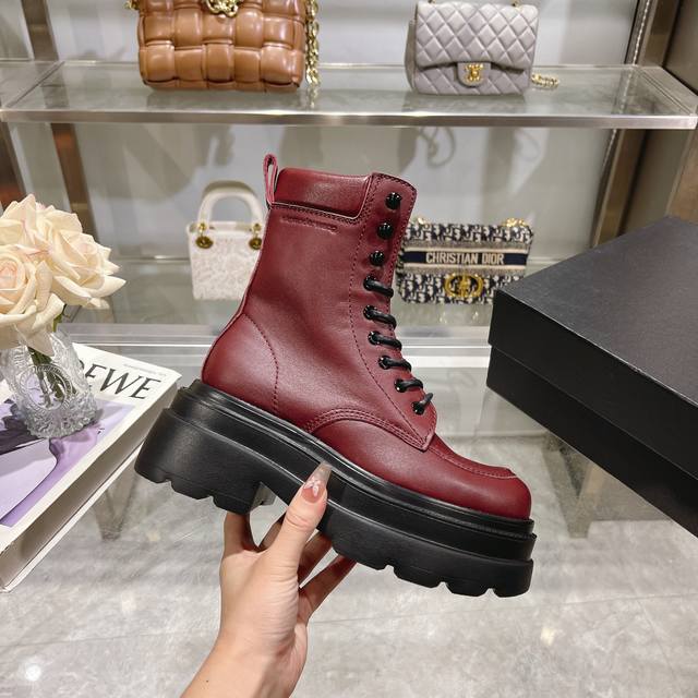 进口亮面开边珠皮料搭配上标志性的品牌金属徽标,厚底设计轻松拥有大长腿