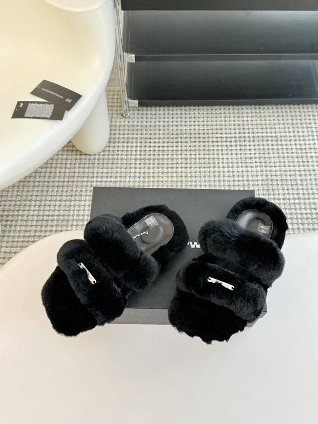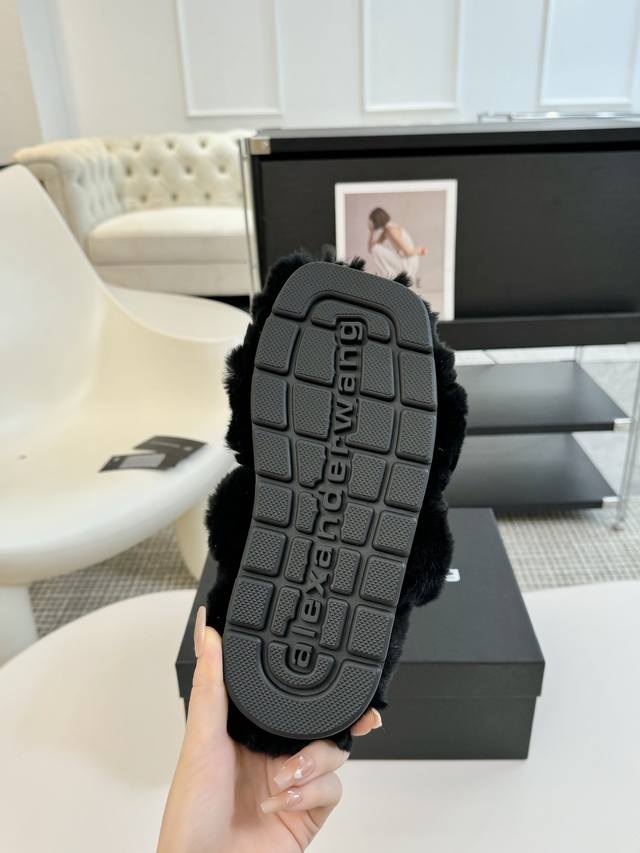 Alexander Wang 大王厚底兔毛拖鞋 太好看了~很难不爱! Bling Bling秋冬毛毛拖 露腿神器,没有比大王更懂女人心了 要闪更要美 真兔毛 内