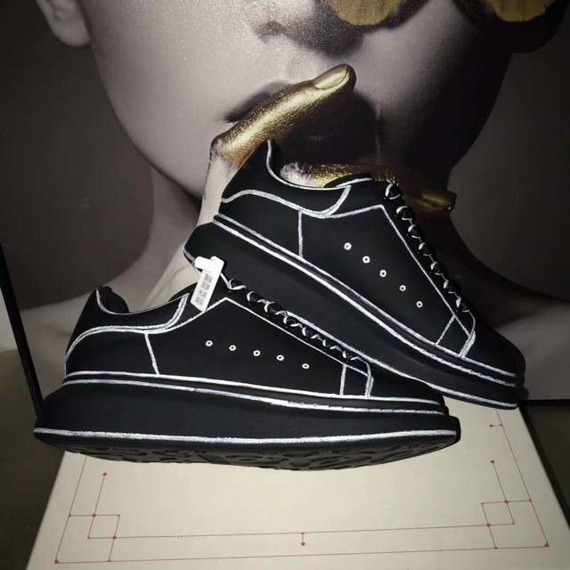 alex*Nder Mc*Ueen麦昆官网最新手工绘画系列小白鞋 这款的特点在于每一只都是手工绘画制作的 想不出任何理由不收它