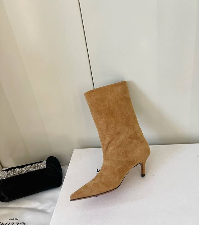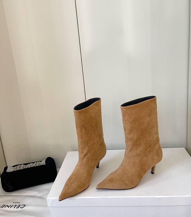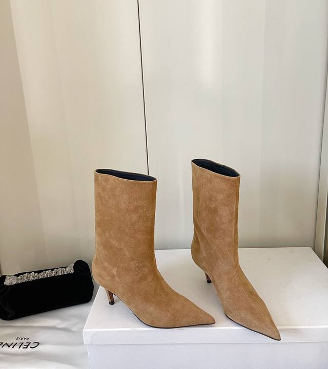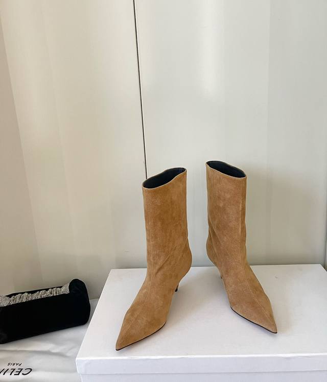 Amina Muaddi 24Ss秋冬新款 尖头足踝短靴