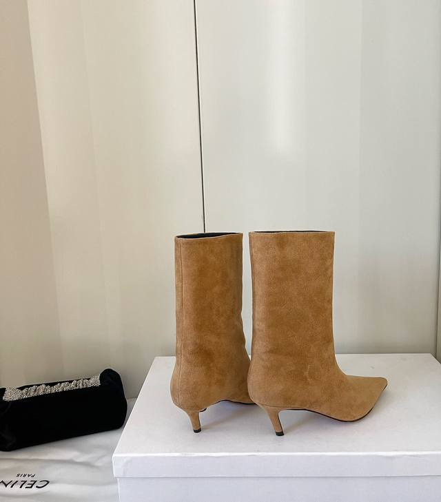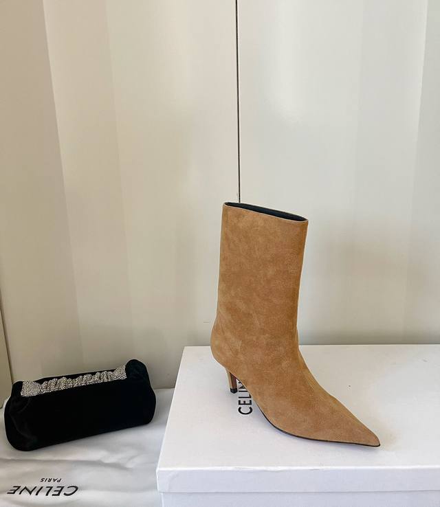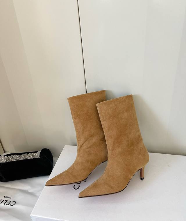 简约猫跟尖头时尚秀场短靴