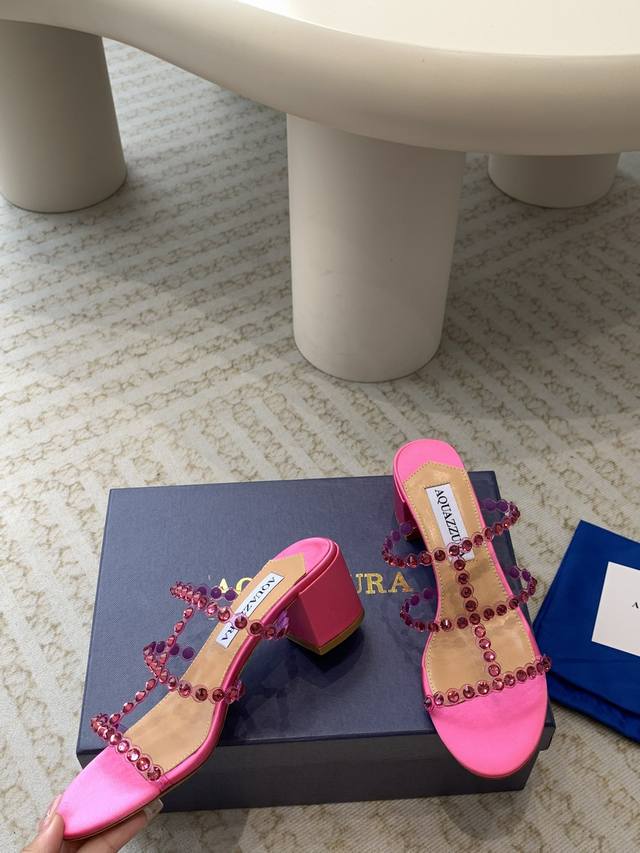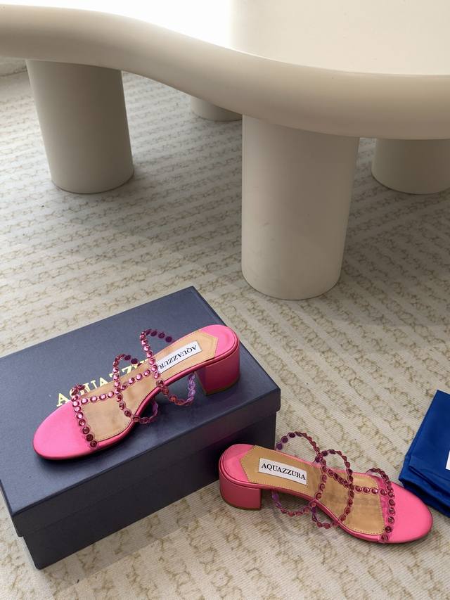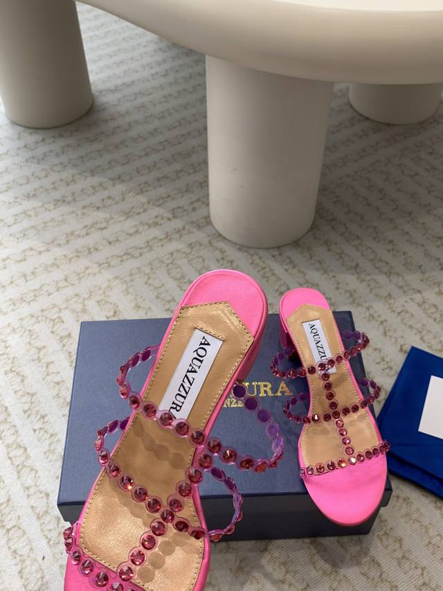 Aquazzura 24Ss 惊艳火爆款、菠萝 王室贵族的钟爱雍容华贵、气质高雅、到手如图柜级品质 进口真丝 璀璨别致水钻饰扣、小羊皮内里、意大利真A级真皮大底