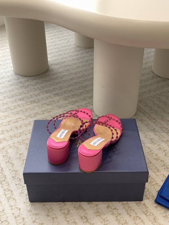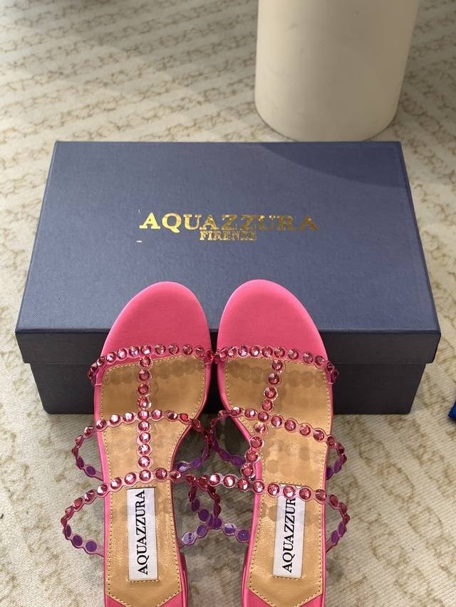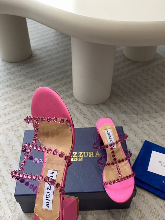 / Aquazzura 24Ss 惊艳火爆款、菠萝 王室贵族的钟爱雍容华贵、气质高雅、到手如图柜级品质 进口真丝 璀璨别致水钻饰扣、小羊皮内里、意大利真A级真皮大底