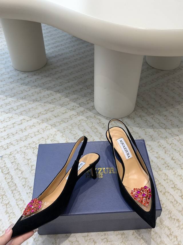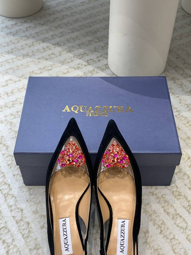 / Aquazzura 24Ss 惊艳火爆款、菠萝 王室贵族的钟爱雍容华贵、气质高雅、到手如图柜级品质 进口羊皮 真丝 璀璨别致水钻饰扣、小羊皮内里、意大利真A级真