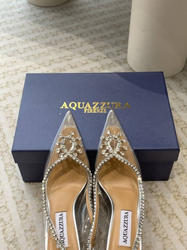 / Aquazzura 24Ss 惊艳火爆款、菠萝 王室贵族的钟爱雍容华贵、气质高雅、到手如图柜级品质 进口pvc胶片 璀璨别致水钻饰扣、小羊皮内里、意大利真A级真