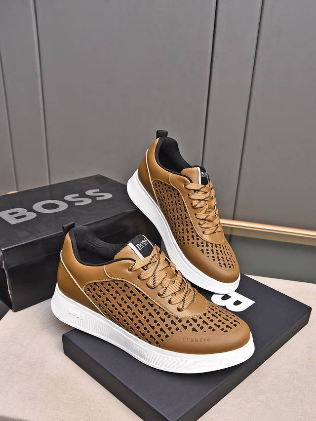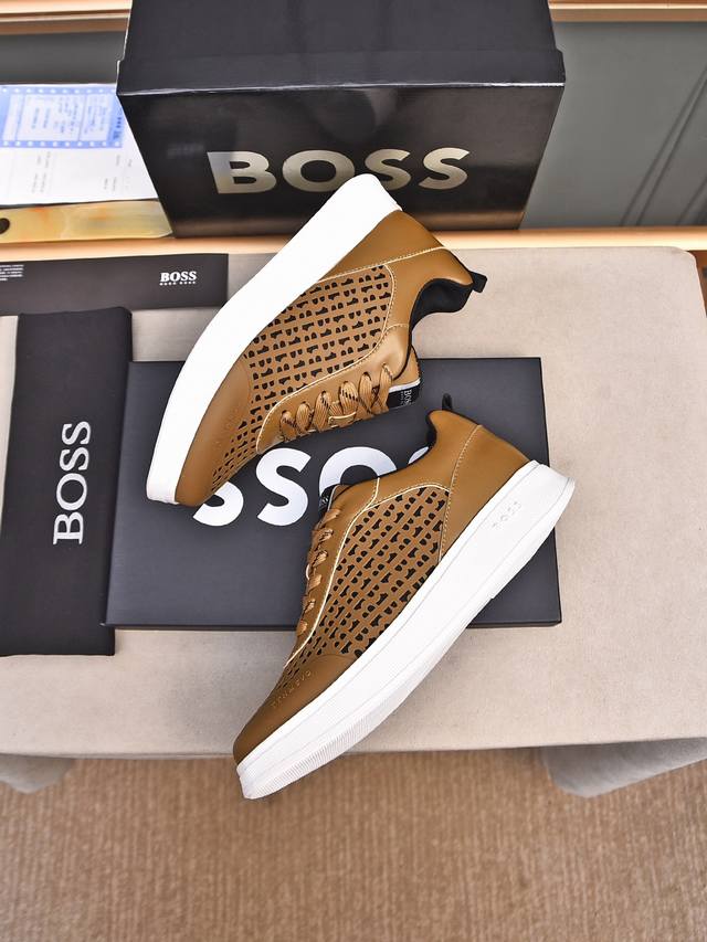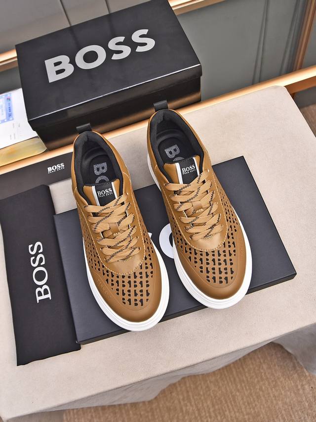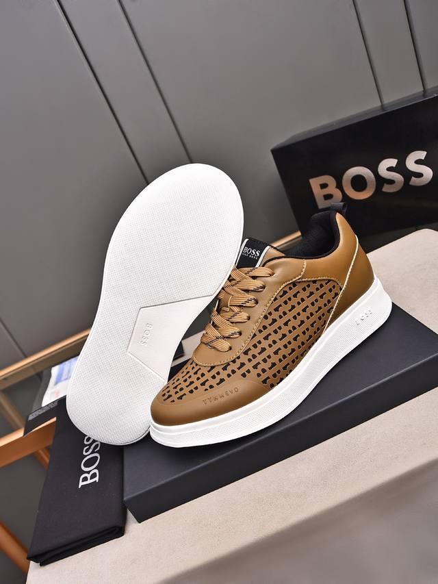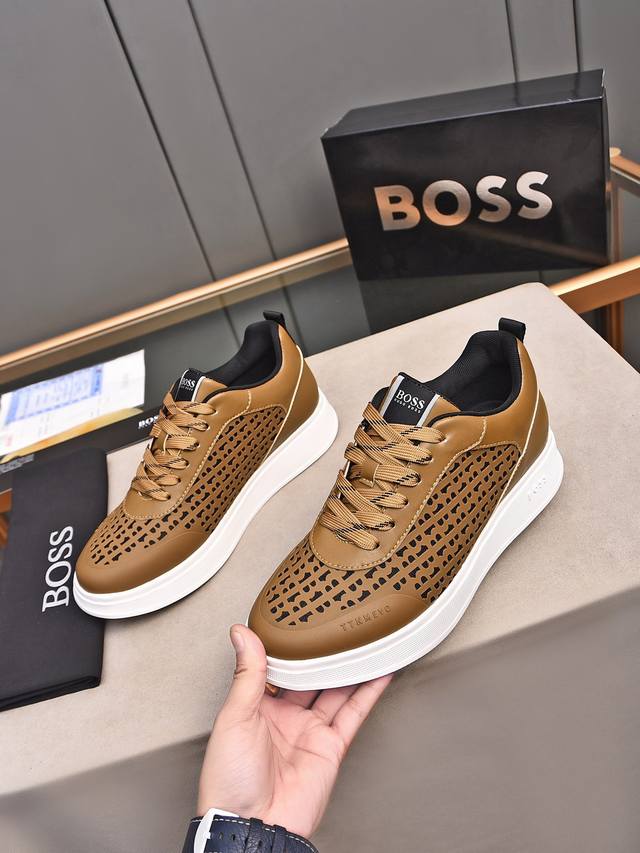 / Boss做工考究,优雅含蓄设计,大方简洁,剪裁新颖,毎一个小细节都做得尽善尽美,演绎出男士细腻韵味,彰显气质内涵。鞋面进口小牛皮压花舒适透气网里。超轻耐磨发泡大
