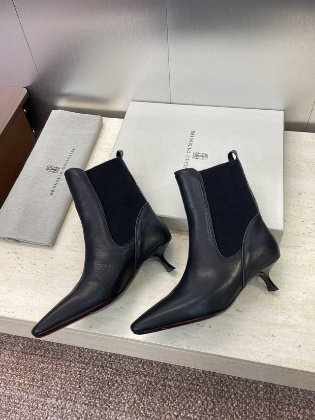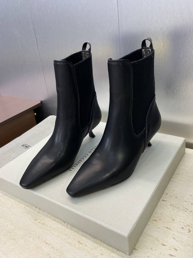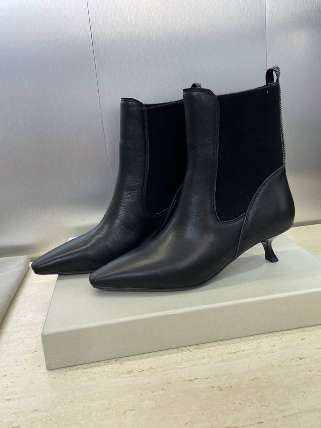 Brunello Cucineli 布鲁内诺库奇内利2025秋冬新款弹力女短靴 Bc 低跟尖头机车骑士马丁靴