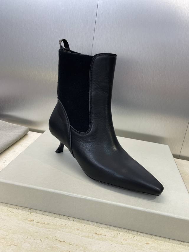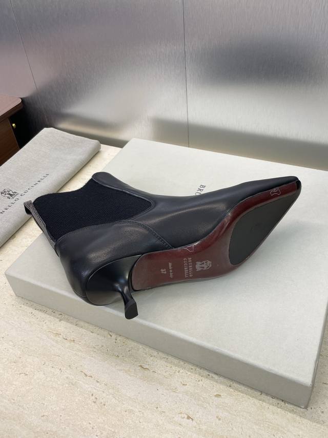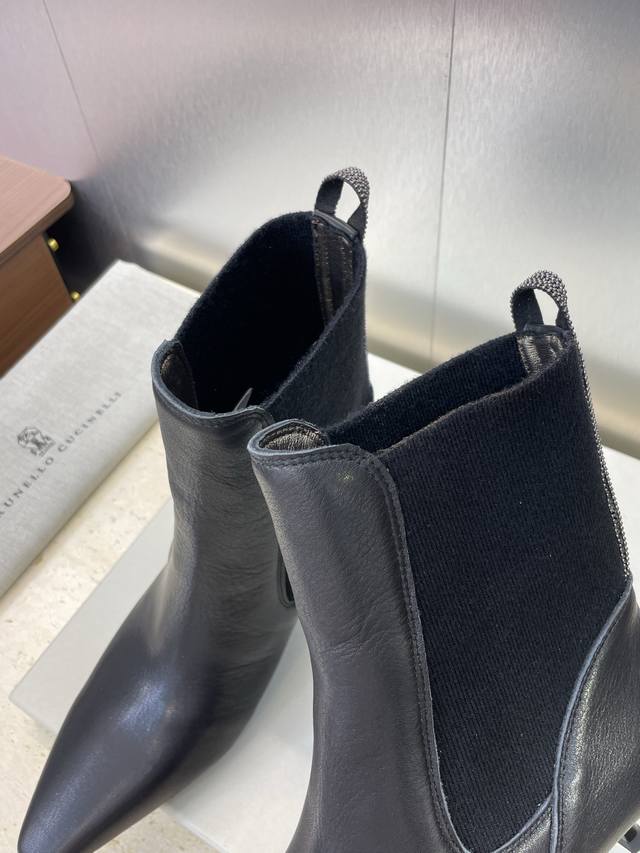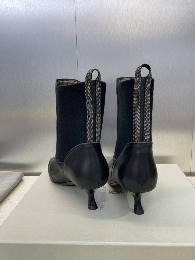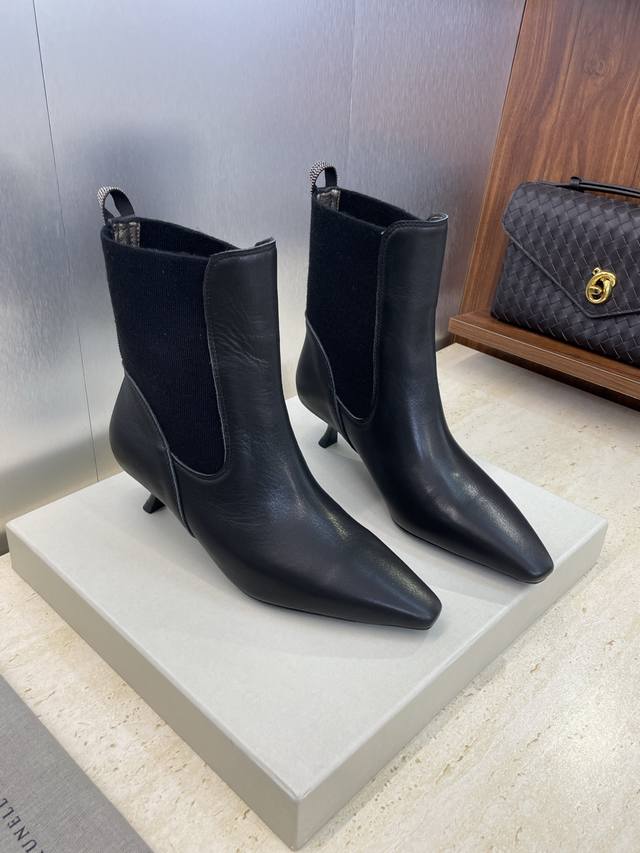 Brunello Cucineli 布鲁内诺库奇内利2025秋冬新款弹力女短靴 Bc 低跟尖头机车骑士马丁靴 材质:鞋面进口小牛皮 进口羊猄麂皮+水染羊皮内里+
