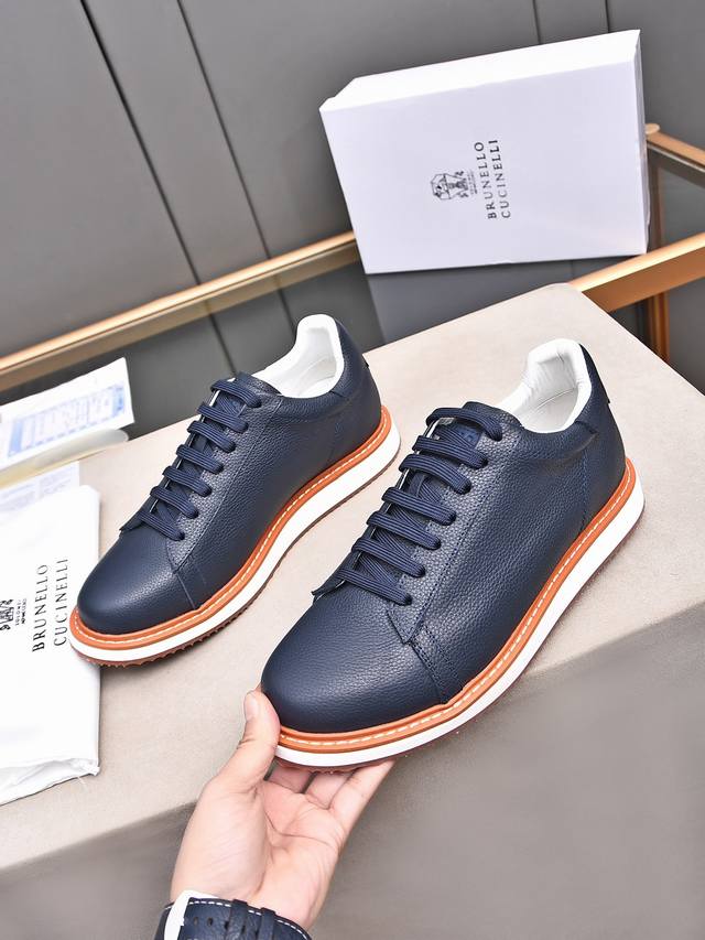 Brunello Cucinelli Bc男士系带休闲低帮男鞋 此品牌是来自意大利的世界顶级奢侈品牌此款平底休闲鞋面料采用意大利进口a级棕咖双色头层油蜡胎牛皮+白色全粒面荔枝纹水染清摔小牛皮,手感超级好,久穿不易变形!内里是专用头层苯染小羊皮,品牌专用一体化成型,环保透气不掉色不闷脚!码数:38 39 40 41 42 43 44 45定做