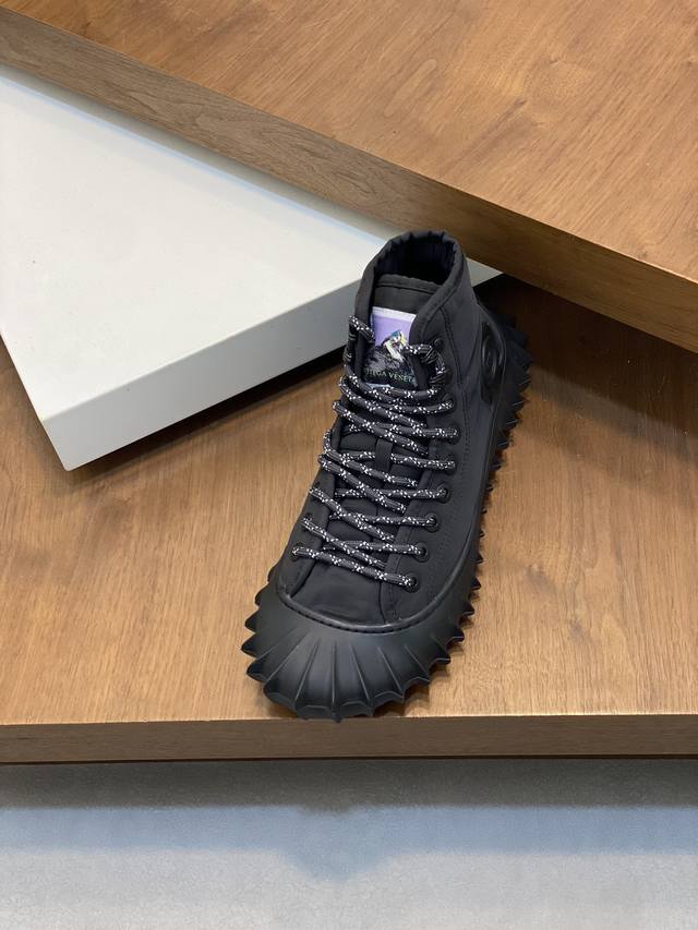 顶级原单代购品质!尼龙高帮系带运动鞋,内饰蜡印效果橡胶品牌标识,原版橡胶鞋底!