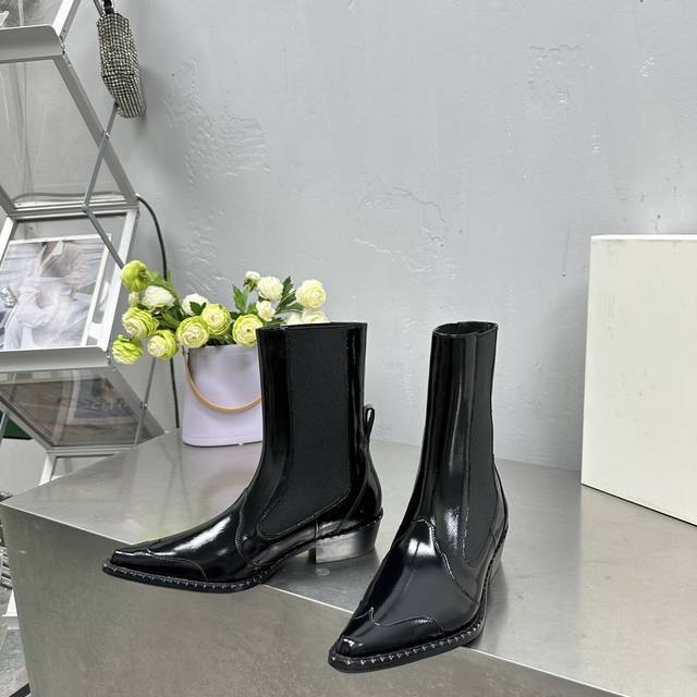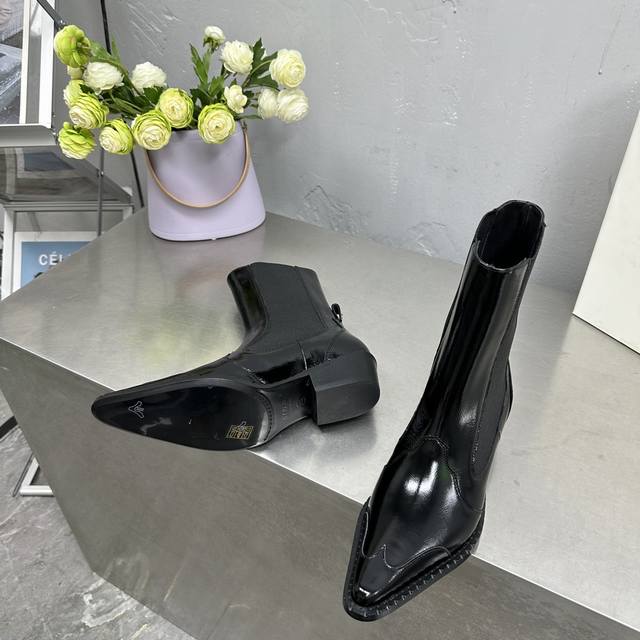 By Far 小众潮牌 24Ss秋冬松紧一脚蹬粗跟尖头短靴!