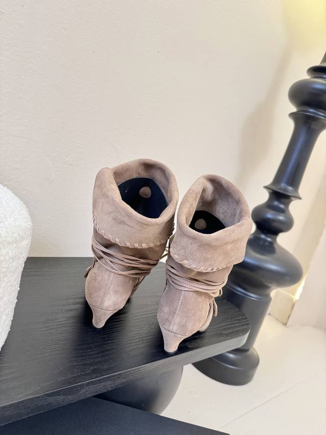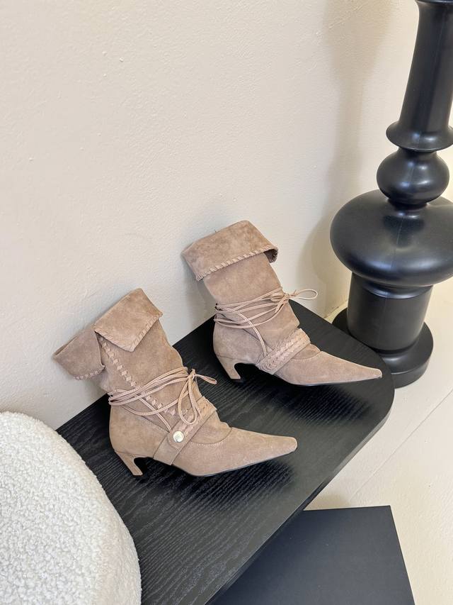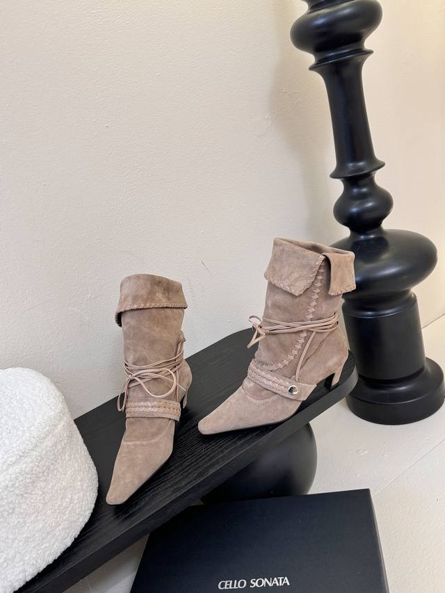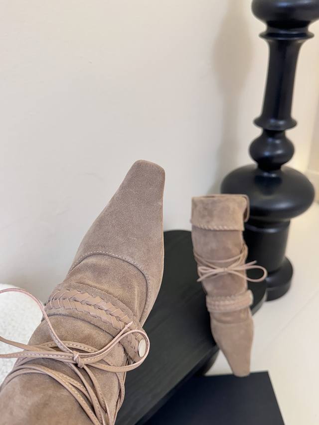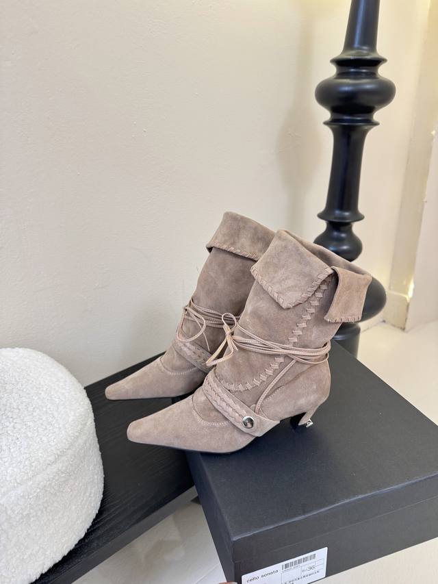 尖头皮质+绑带设计 极致柔软细腻搭配同色系编织条带 自带神秘故事感