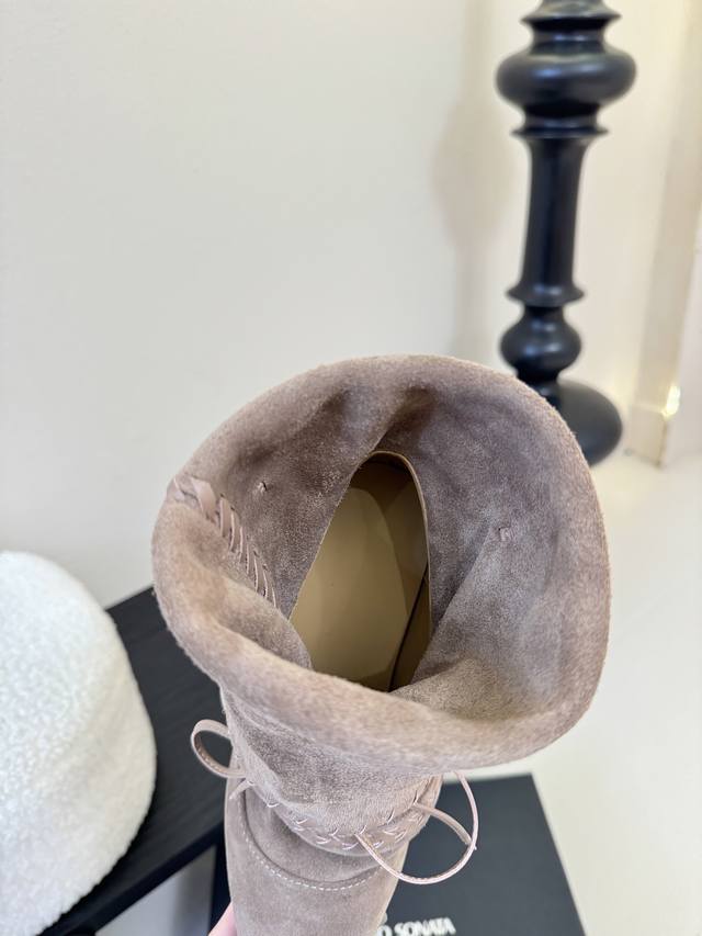 游牧风复古麂皮编织中靴 把复古时髦玩明白了