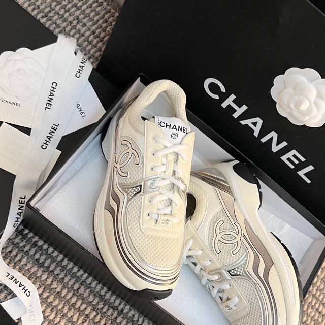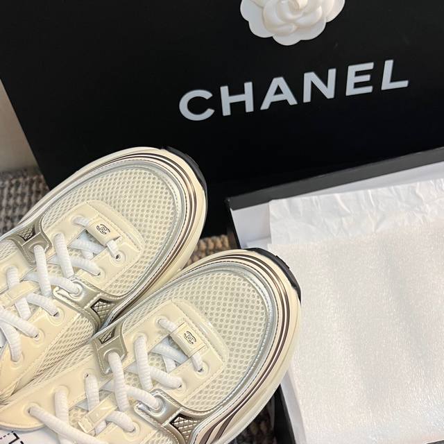 chanel~~早春度假系列;金色银色运动鞋 最新;国外走秀系列; 拼接鞋面 金属色皮镀膜网面 3.5Cm原版双色底 35 40正码 配套包装