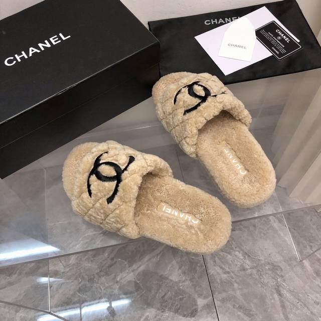 / chanel 22新款毛拖上新色 香家新款羔羊毛毛拖,脚感舒服,上脚显腿长。 秋冬来啦,赶紧入手一双好看的毛拖,搭配各种衣服都 独家原版开模大底 Size:35