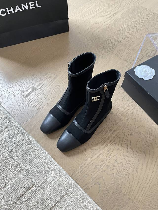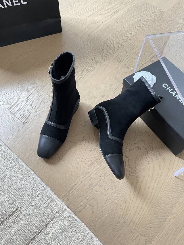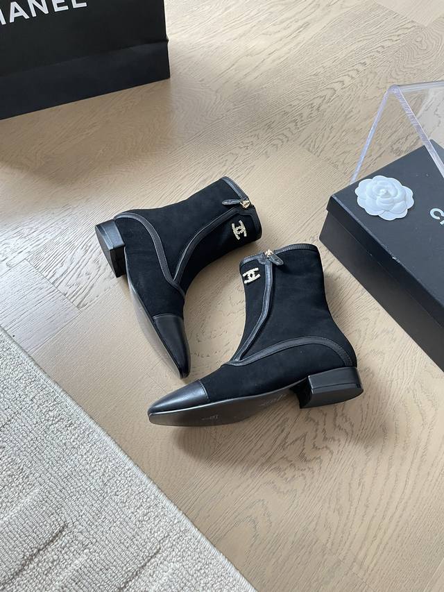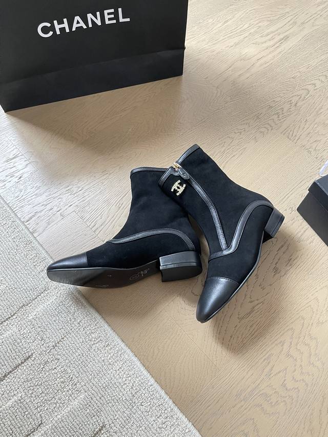 chanel 24B秋冬新款短靴靴 顶级版本!细带搭配经典百搭 抢先发售 鞋面-布面 内里垫脚羊皮 原版真皮大底 跟高:3Cm 码数:35-41 定制不退不换