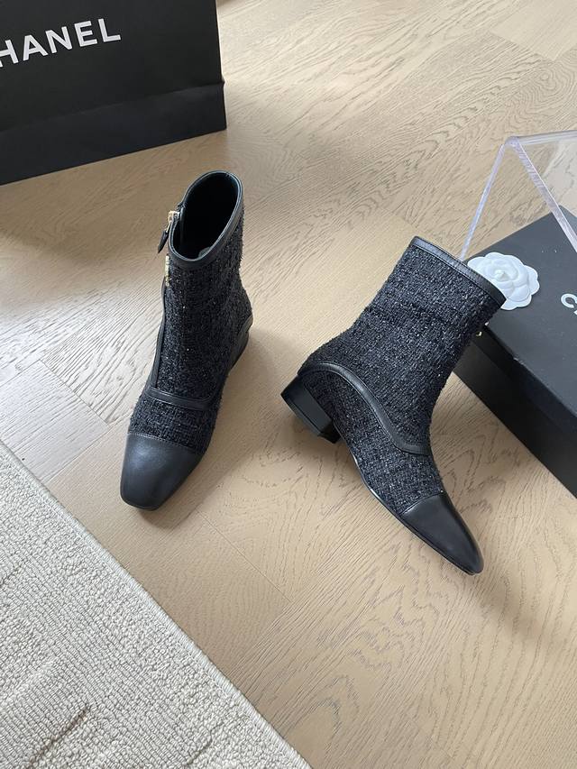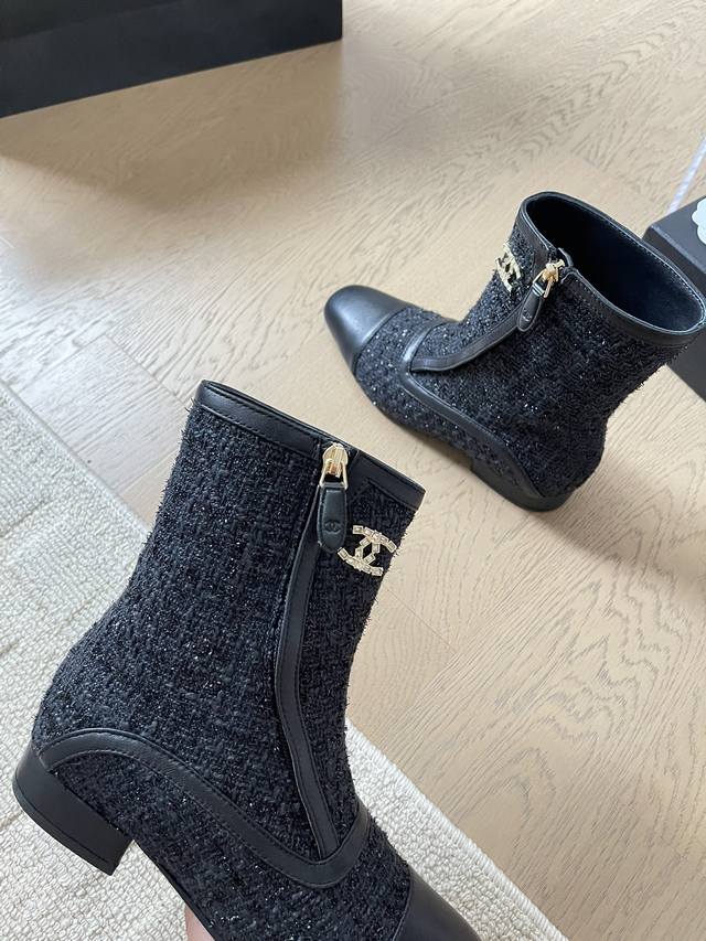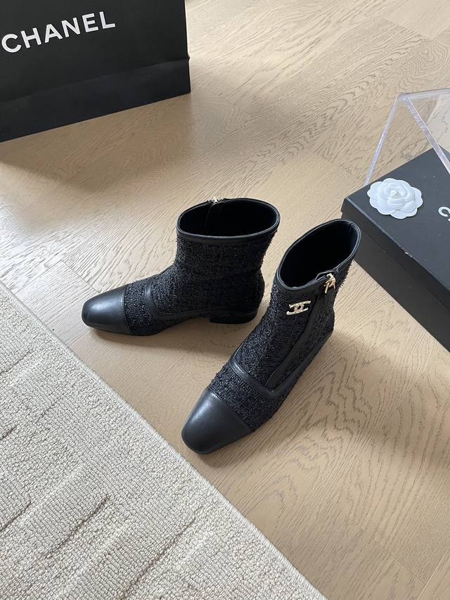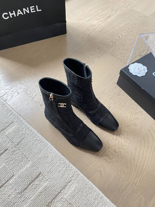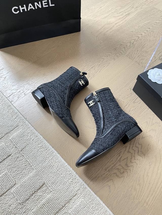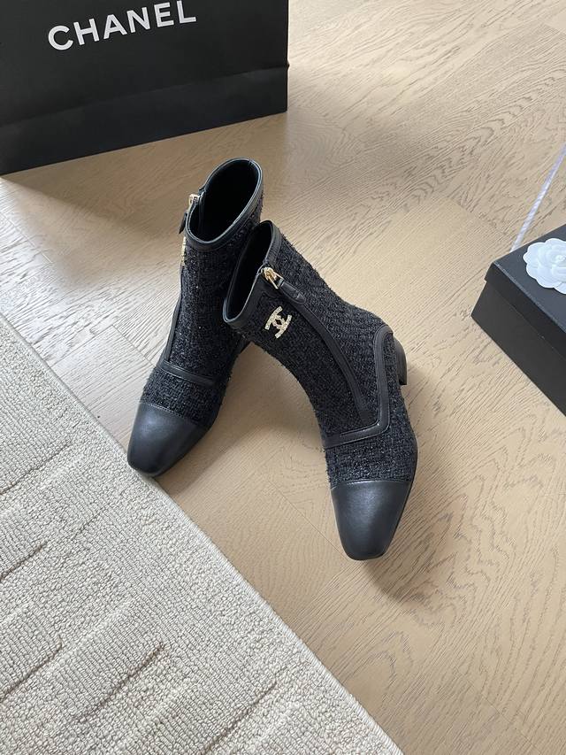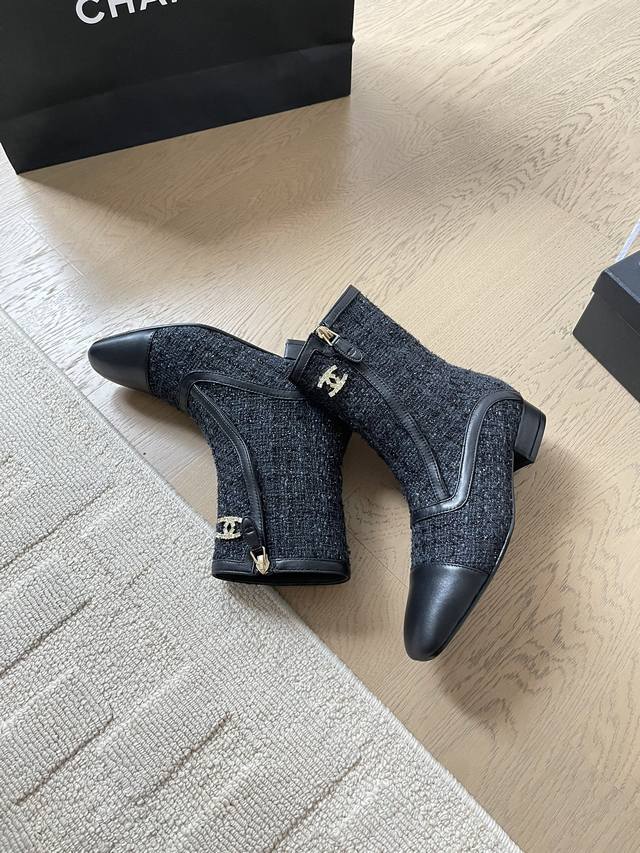 chanel 24B秋冬新款短靴靴 顶级版本!细带搭配经典百搭 抢先发售 鞋面-布面 内里垫脚羊皮 原版真皮大底 跟高:3Cm 码数:35-41 定制不退不换