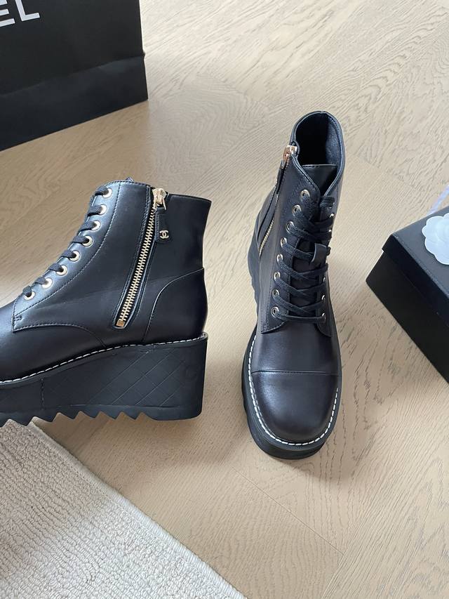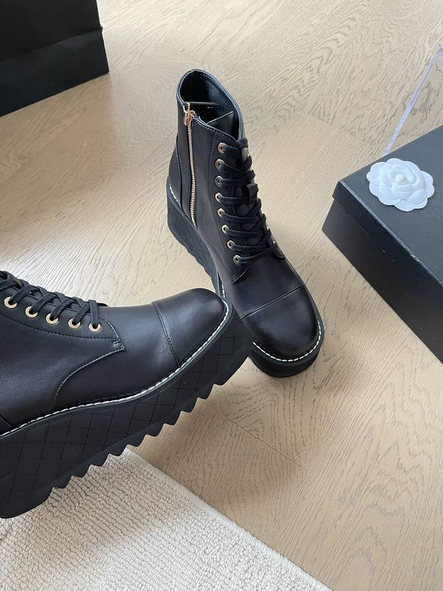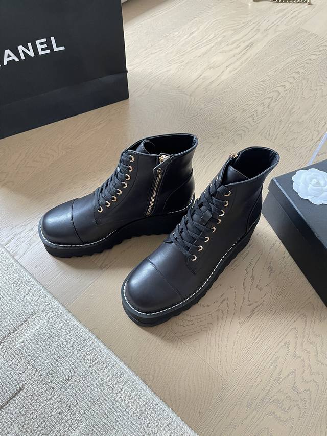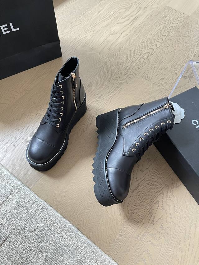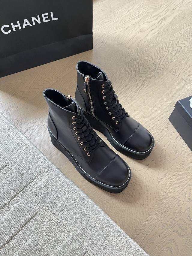 chanel 24B秋冬新款短靴靴 顶级版本!细带搭配经典百搭 抢先发售 鞋面-皮面 内里垫脚羊皮 原版真皮大底 跟高:3Cm 码数:35-41 定制不退不换