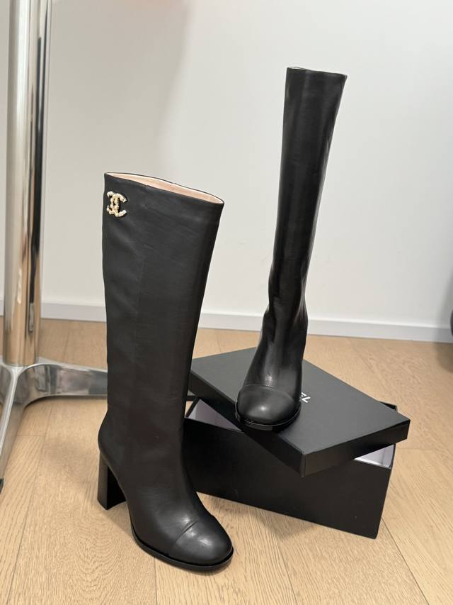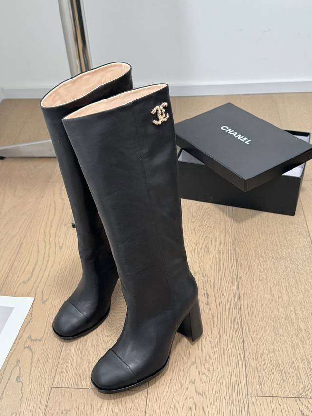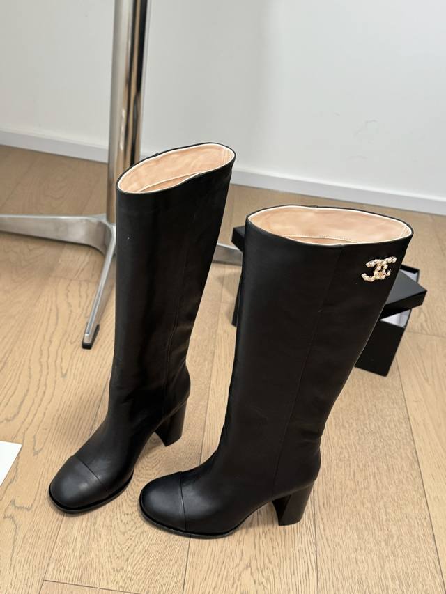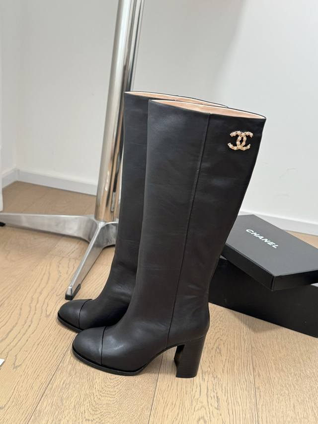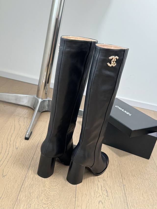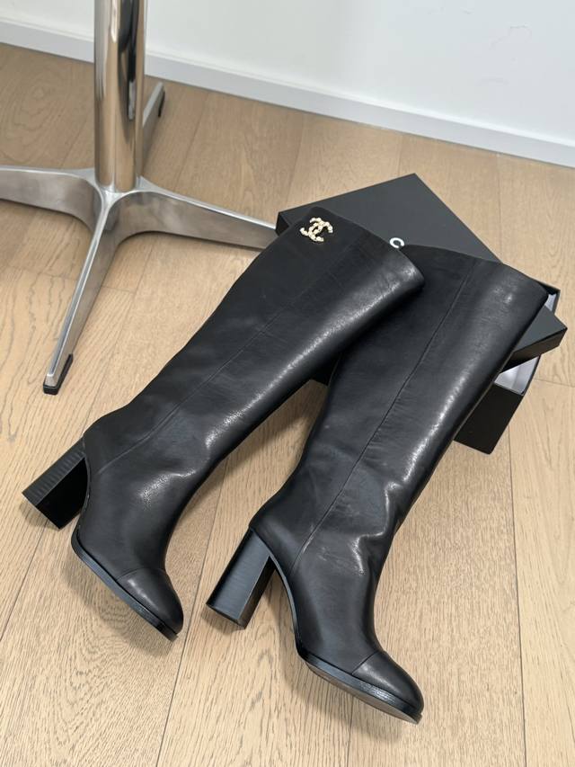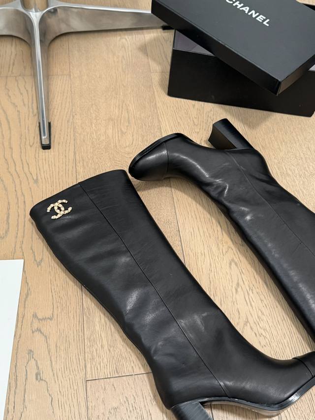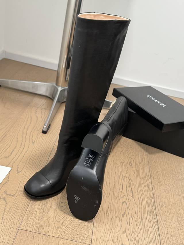 chanel 24B秋冬新款靴! 这双最新款的靴子太好看啦 最上面筒靴旁边的小logo给整体增加了小细节~ 国内还没上新 先买先穿啦 鞋面全羊京 内里羊皮 真皮