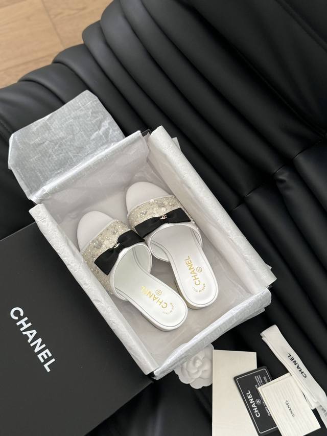 Chanel 24S早春新款鱼嘴系列拖鞋 一如既往的高版本 经典蝴蝶结版面 鞋面内里羊皮 真皮大底 Size:35-39 其他码数定