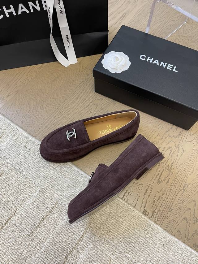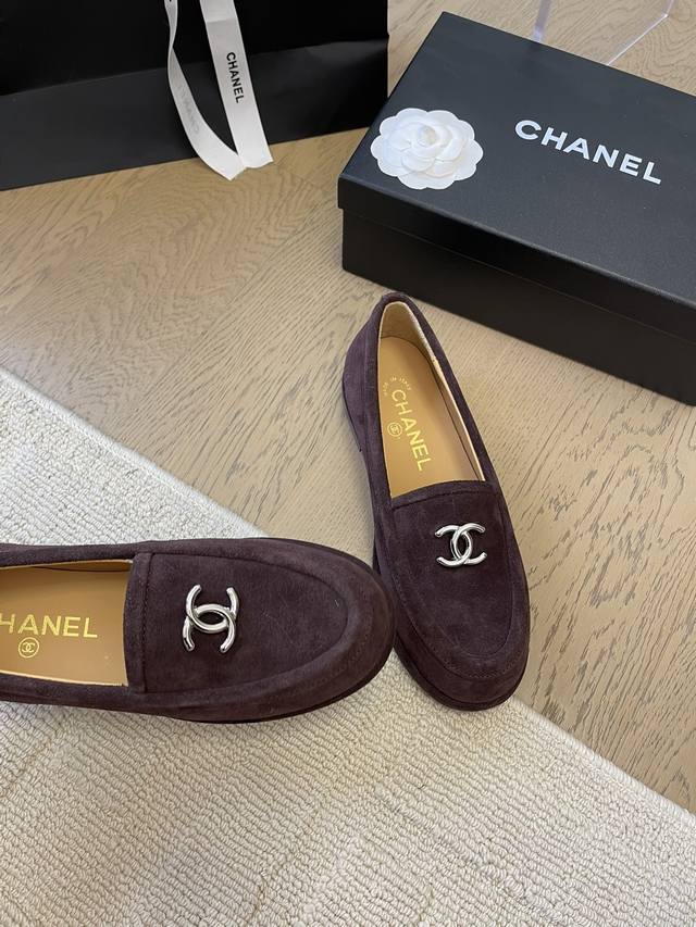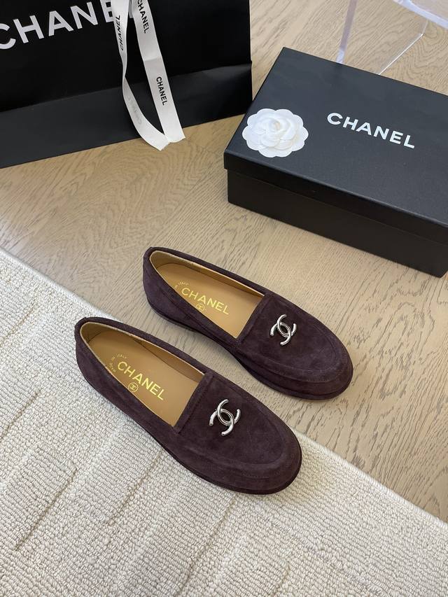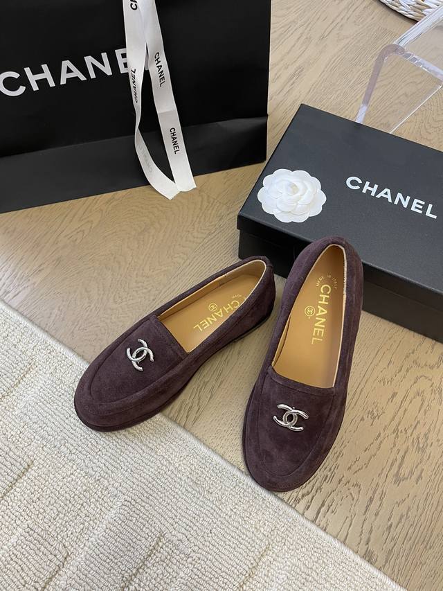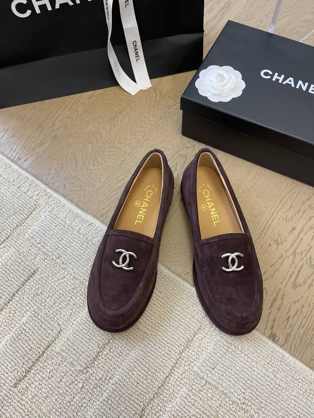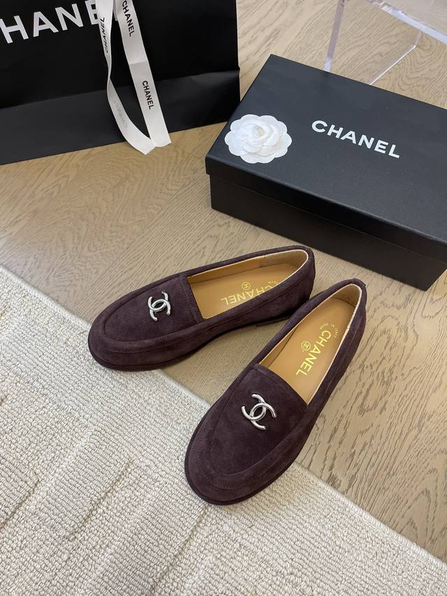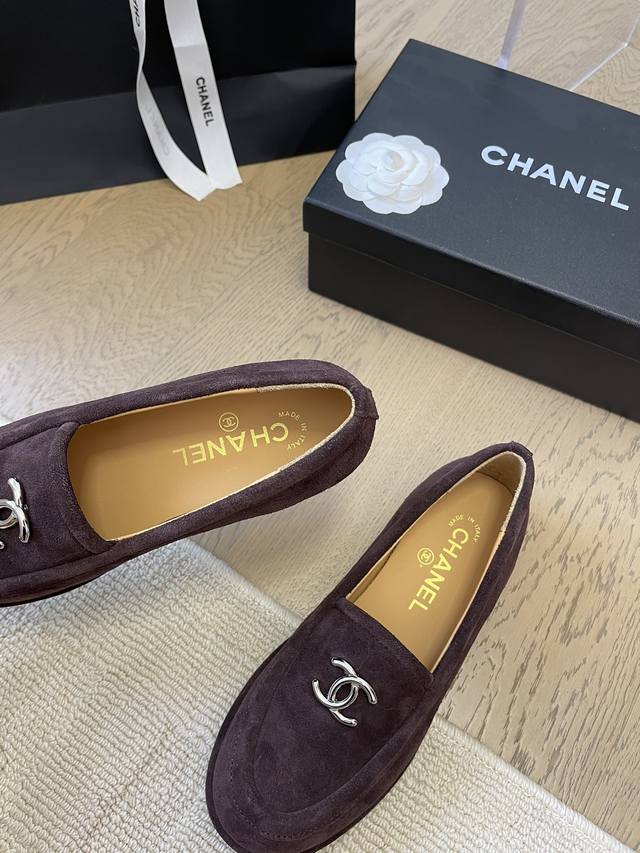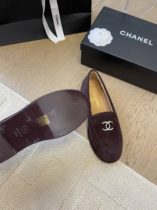 chanel24新款秋冬乐福鞋 新款双c经典 上脚很舒服诶 美拉德棕色还是很适合秋冬的~ 鞋面麂皮 牛皮 内里羊皮 真皮大底 Size:35-39 其他码数定做