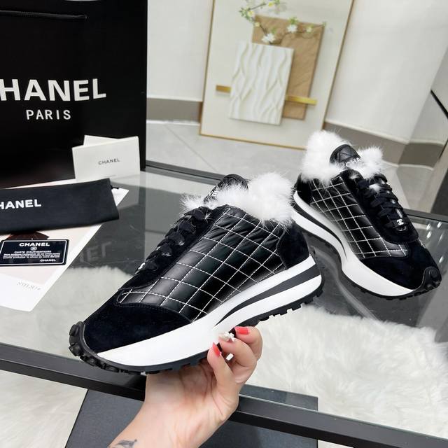 Chanl* 网红明星同款 专柜最新走秀主打系列上新款, 麂皮字母一比一原版排列搭配。 内里垫脚:进口澳洲羊毛里 大底:原私模大底 码: 35-41 40、41码不退不换