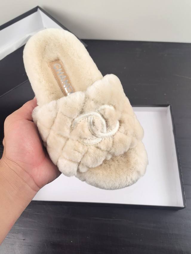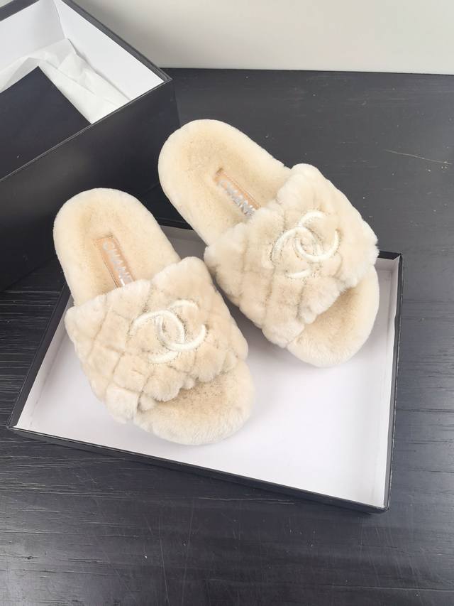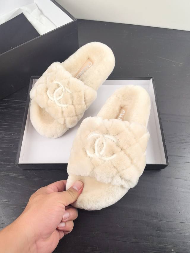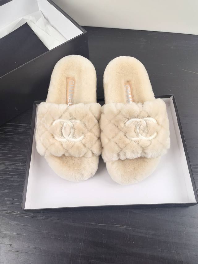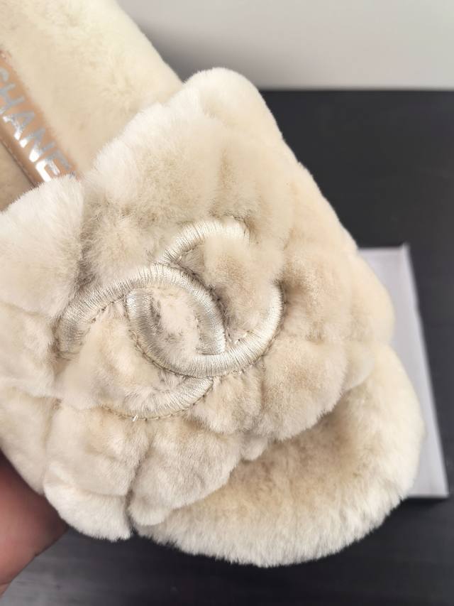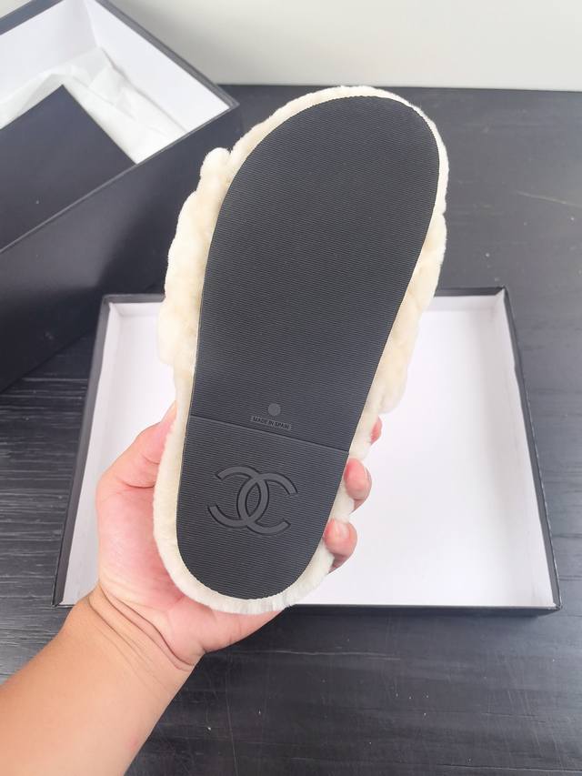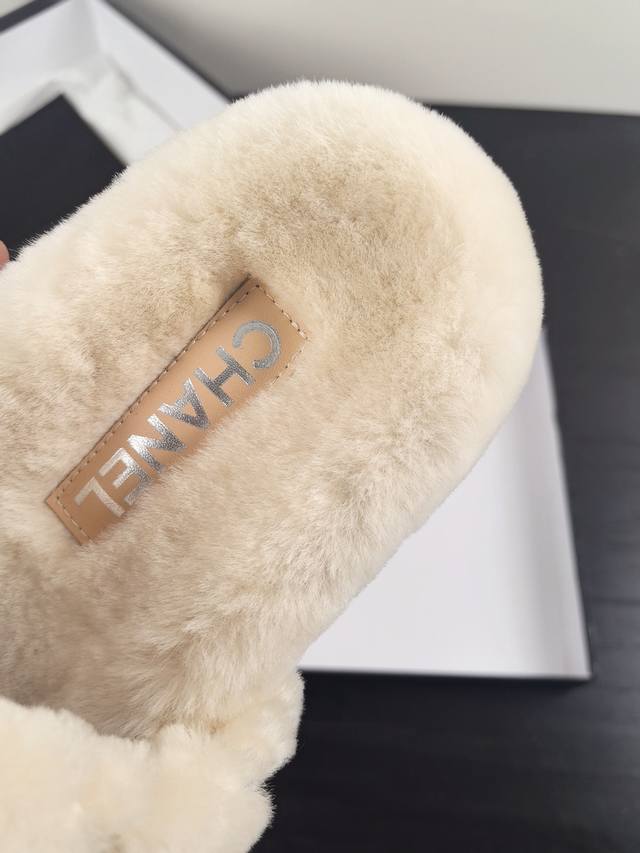 Channel 25Ss秋冬新款 平底羊毛拖鞋 超舒适的毛拖 简约随性 时髦有范 慵懒又不乏高级感 最舒适的拖鞋没有之一 随意上脚都好看有型 绝绝子 鞋面 内里