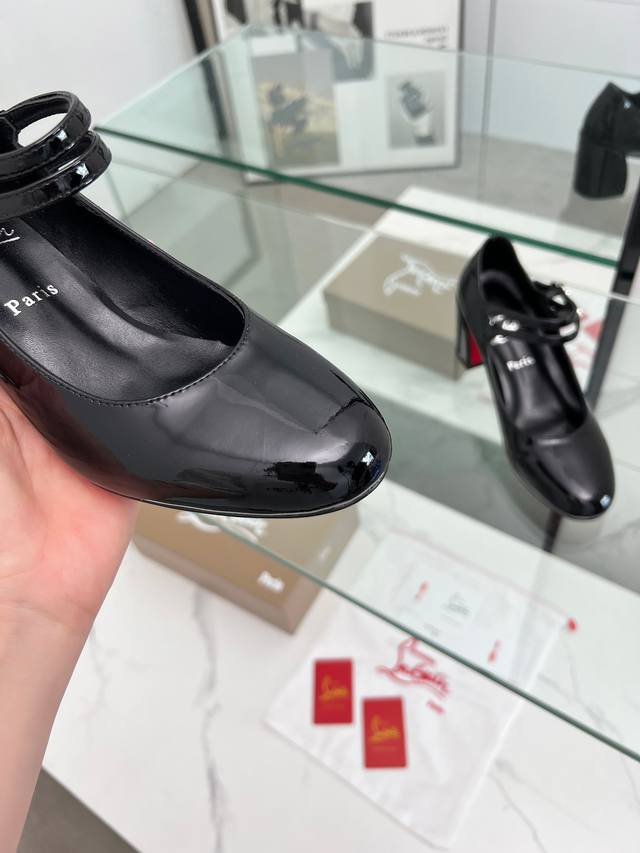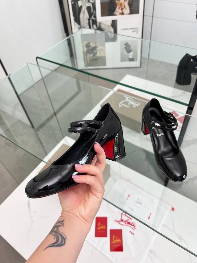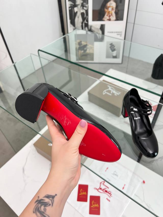 Christian Louboutin 最新玛丽珍粗跟一字高跟红底鞋 精致线条演绎优雅圆头与浅口设计,于视线交汇处,传递真挚爱意。呈 纤长修窄外观,其雕塑感的线条凸显丰盈而魅惑的轮廓。复古优雅 梦中情鞋 气质Upup 经典爆款