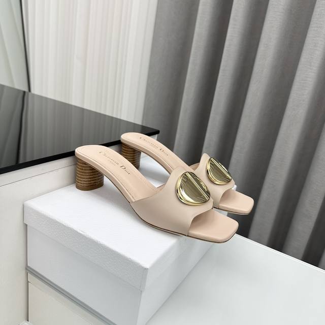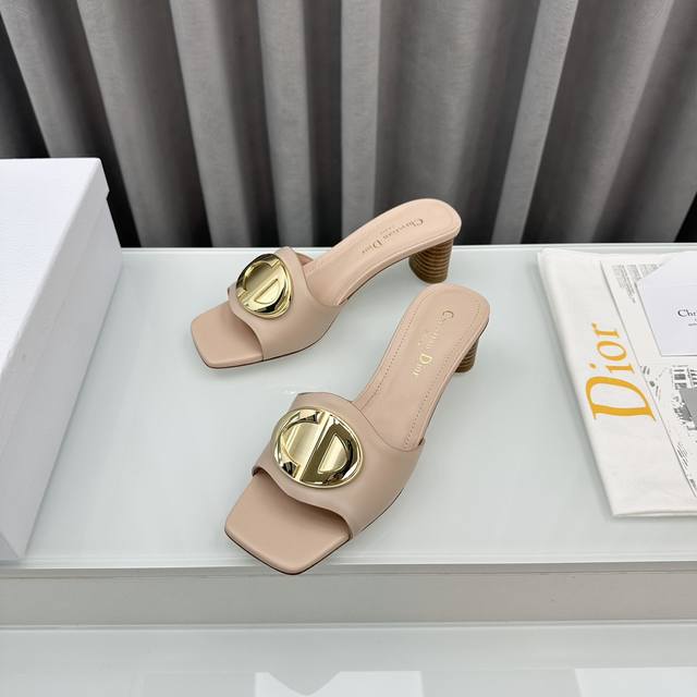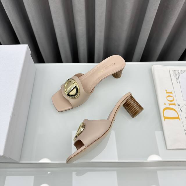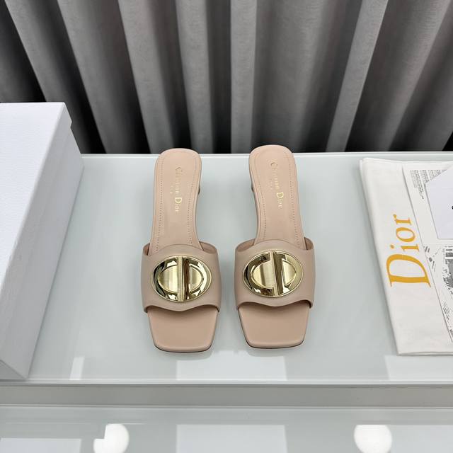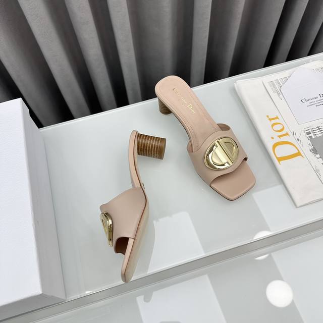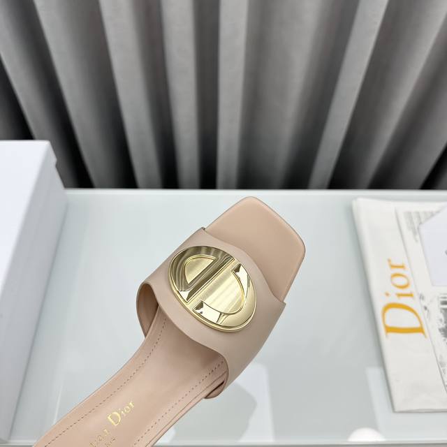 D家2025早春新款c‘Est 女鞋 Cd字母logo金属扣平底凉鞋 方头圆柱粗跟果冻色一字拖鞋 市面顶级版本