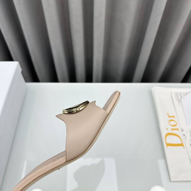 D家2025早春新款c‘Est 女鞋 Cd字母logo金属扣平底凉鞋 方头圆柱粗跟果冻色一字拖鞋 市面顶级版本材质:鞋面进口牛漆皮水染羊皮内里+意大利真皮大底+