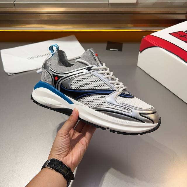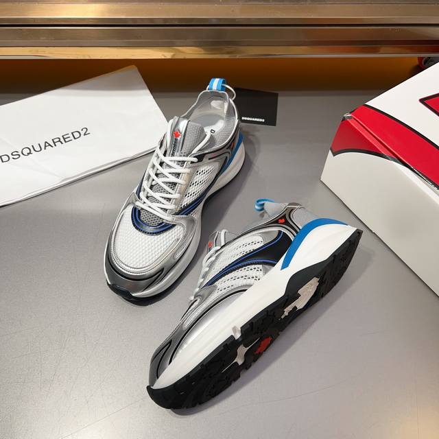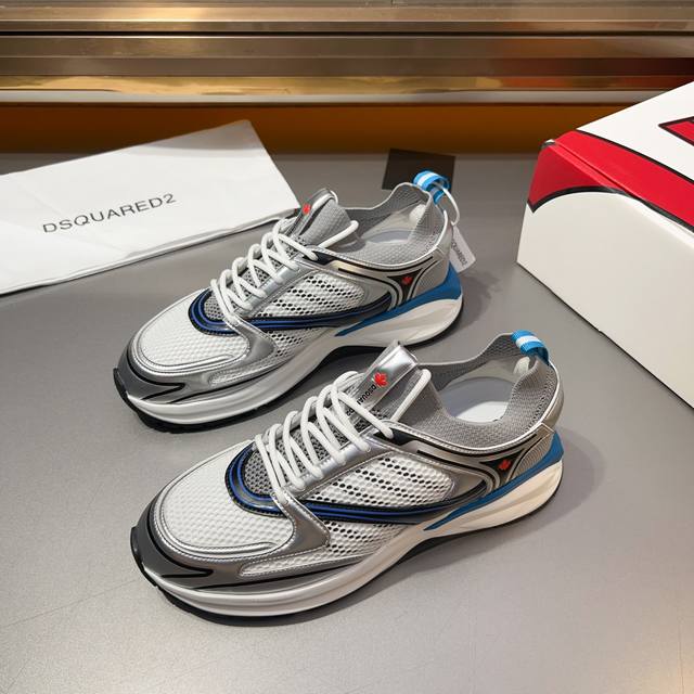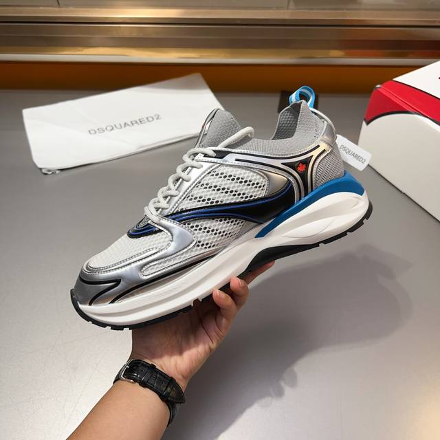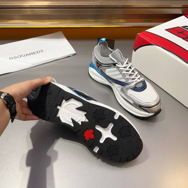 / d2次方男士运动鞋!原厂材料制作,鞋面使用多种材质拼接,时尚新颖,后置提鞋环,原版厚底增高气垫组合大底,大底造价非常昂贵,精品级别,时髦百搭单品!推荐入手! S
