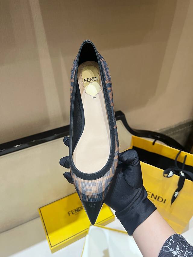 fend1最新colibrì尖头芭蕾舞平底鞋。高科技网布材质,饰有粉色ff图案,粉色头层牛皮包边和亮面粉色鞋头,饰有fend1凸纹压花字样,进口水染羊皮垫脚,真皮注塑大底 真皮底里最贵最难的做法 ,原版全套包装!
