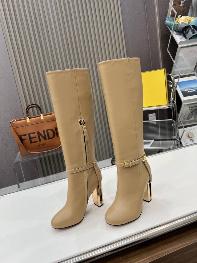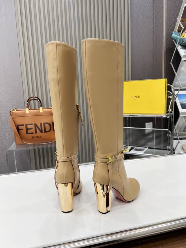 原版真皮牛皮大底,鞋跟饰有镂刻细节和金色金属Ff图案。