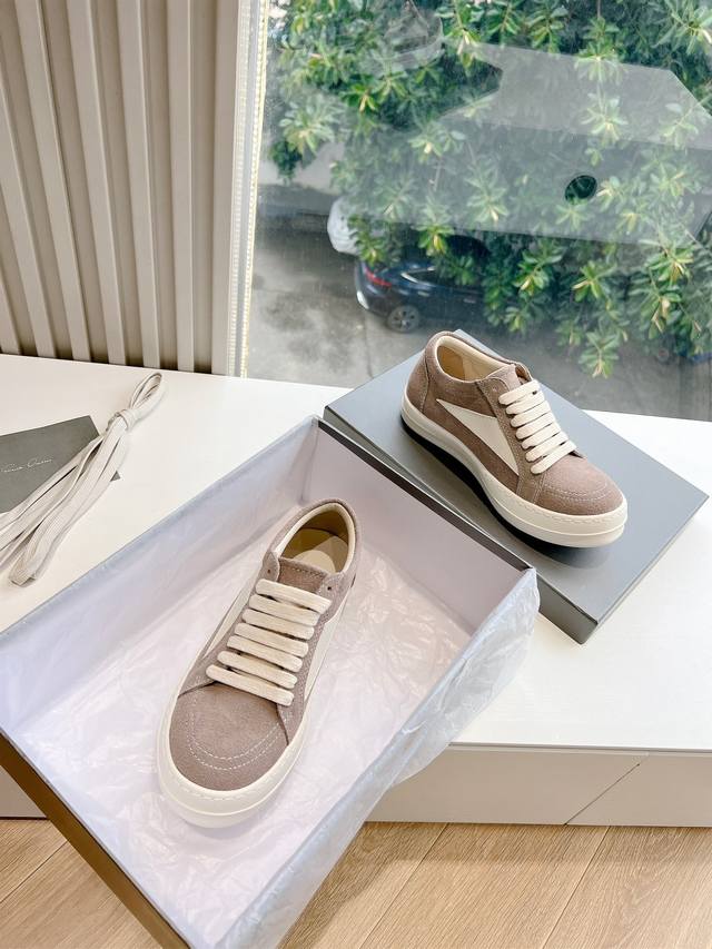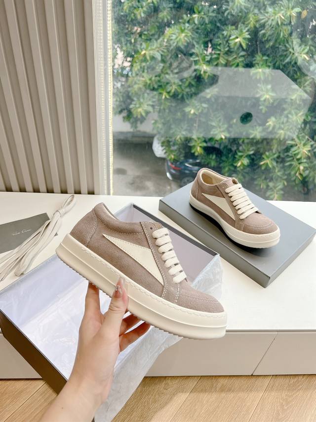 / G0135代购级别rick Owens 瑞克 欧文斯24春夏情侣系列edfu全粒面小牛皮复古运动鞋休闲鞋 面料:原版牛皮 内里:羊皮 尺码:35~43女码 40