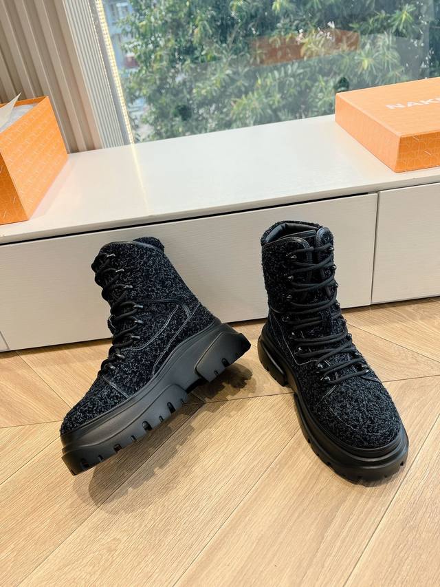 G028Naked Wolfe 秋冬lisa同款西部牛仔靴高筒堆堆靴设计感小众系带短靴 顶级版本最热门的厚底鞋当属小众品牌naked Wolfe,两个字:显高