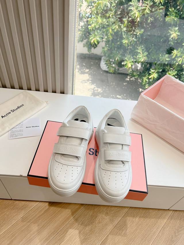 G035代购级别现货供应高版acne Studios经典魔术贴平底笑脸真皮休闲板鞋运动女鞋小白鞋