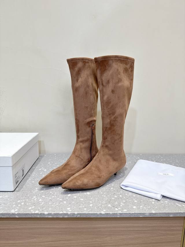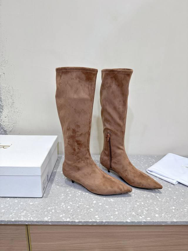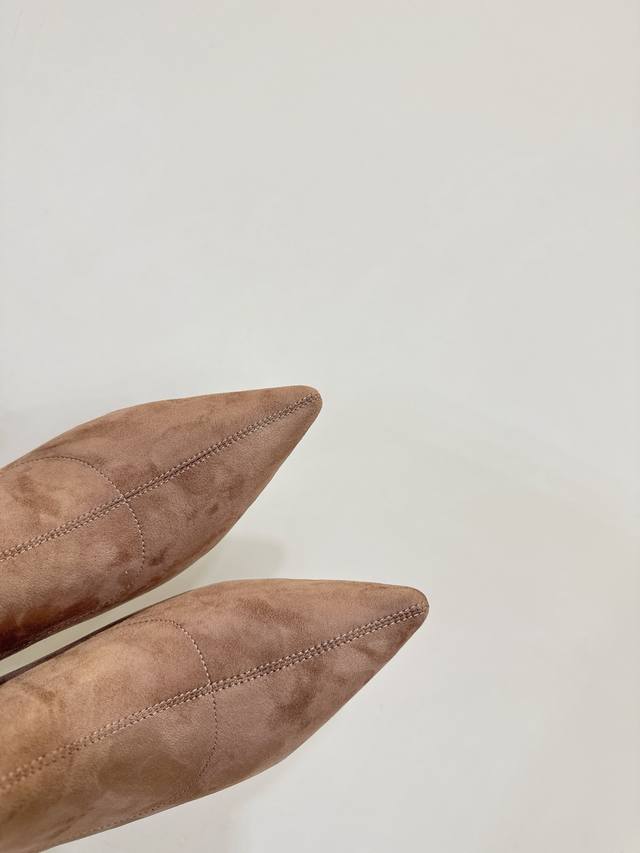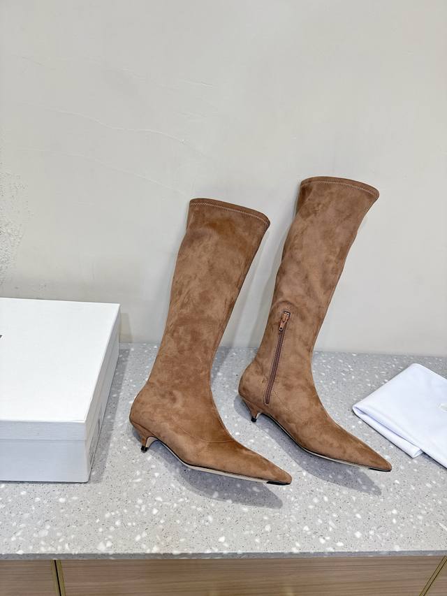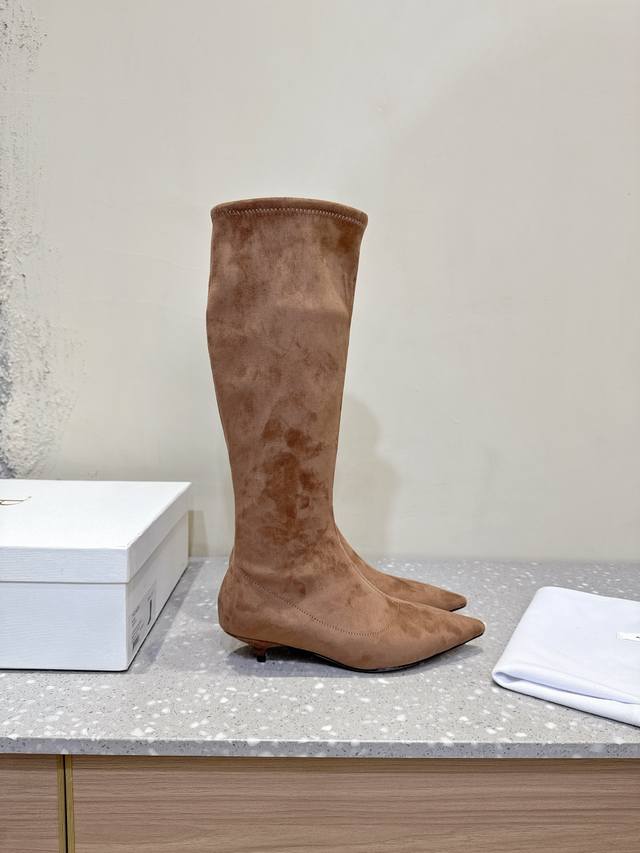 G123 The Row 小众潮牌 25Ss秋冬新款 松紧弹力 尖头 短靴 小猫跟长靴