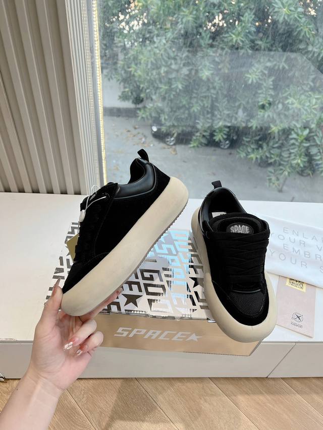 G411Goldengoos*25C春夏最新款 圆润软乎乎面包鞋25C黄金鹅春夏最新款,胖乎乎软乎乎面包鞋!透气网设计,看图片就觉得很可爱的小鞋子哦!胖乎乎的版型设计,大底设计的也很软哦!上脚感觉像是踩在棉花上一样!而且整体重量不会很重!暴走不累脚的款!鞋头还有透气网设计!避免闷脚哦!!