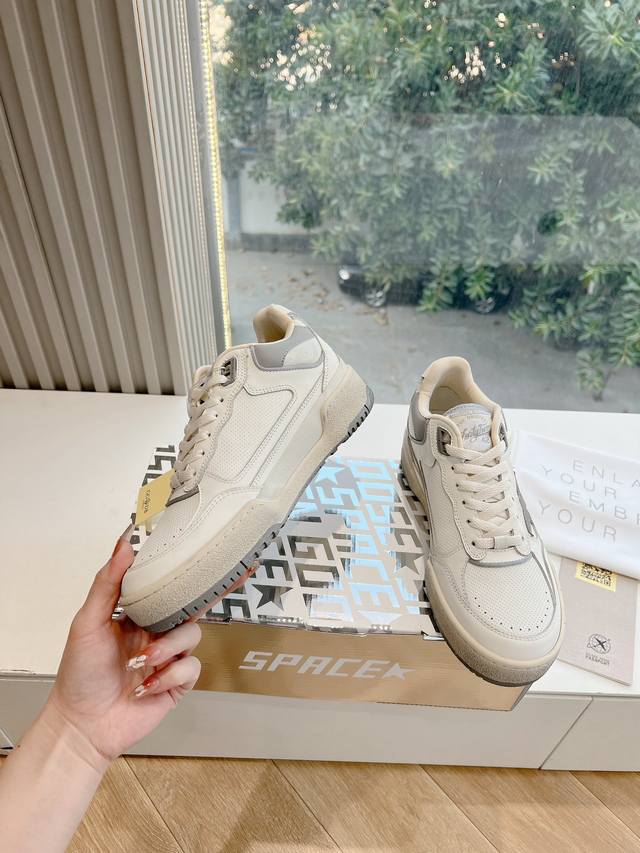 G411Goldengoos*25C春夏最新款 圆润软乎乎面包鞋25C黄金鹅春夏最新款,胖乎乎软乎乎面包鞋!透气网设计,看图片就觉得很可爱的小鞋子哦!胖乎乎的版型设计,大底设计的也很软哦!上脚感觉像是踩在棉花上一样!而且整体重量不会很重!暴走不累脚的款!鞋头还有透气网设计!避免闷脚哦!!