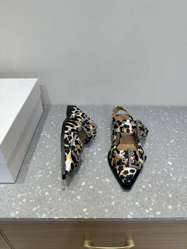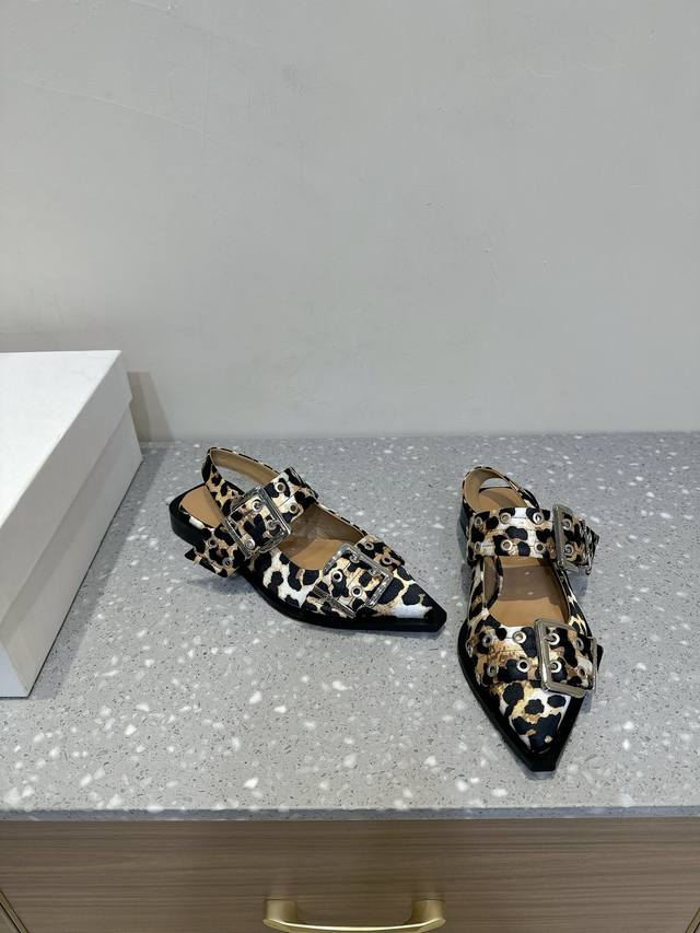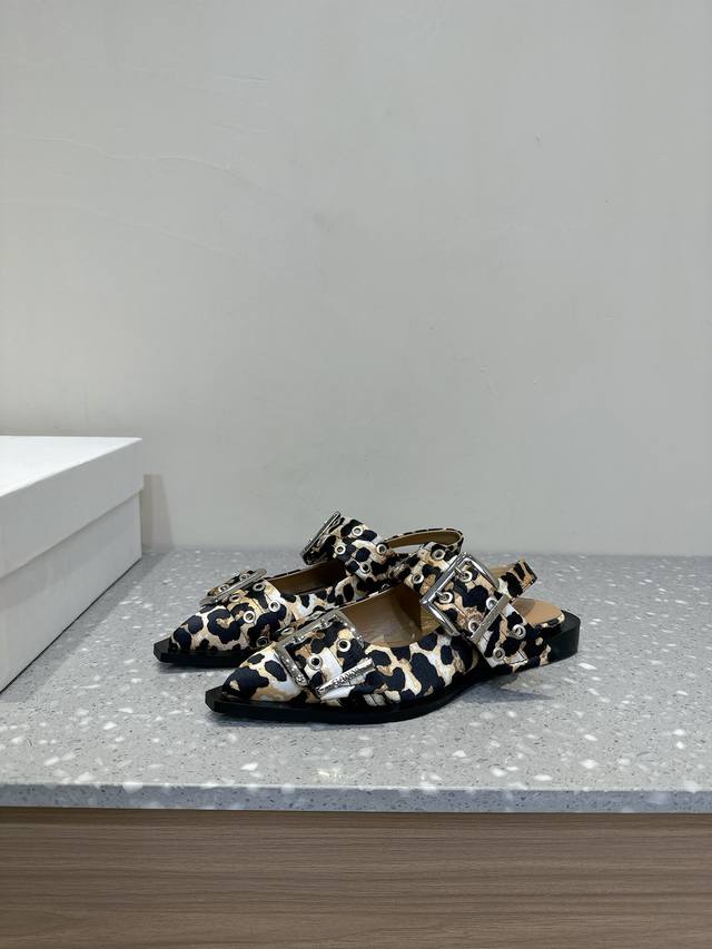ganni 小众潮牌 新款尖头皮带扣后空凉鞋 穆勒鞋